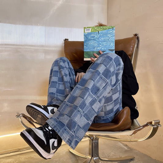 IRREGULAR CHECKERED MOHAIR CREWNECK