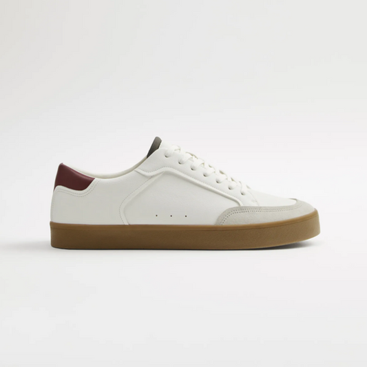 RETRO CONTRAST-PANEL LEATHER SNEAKERS - WHITE-RED