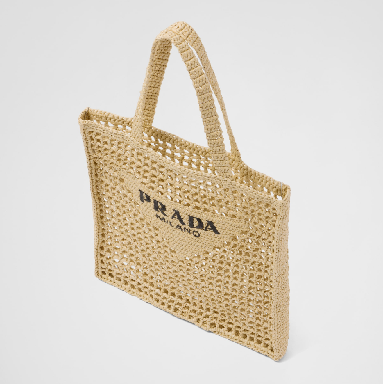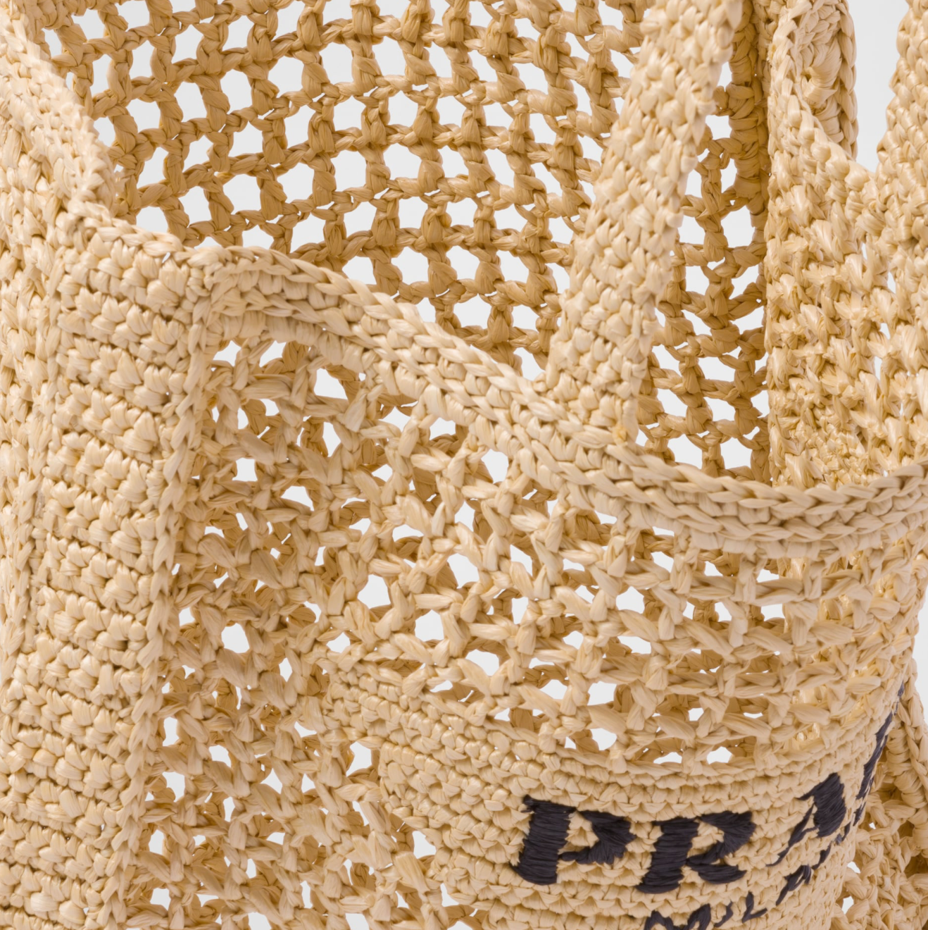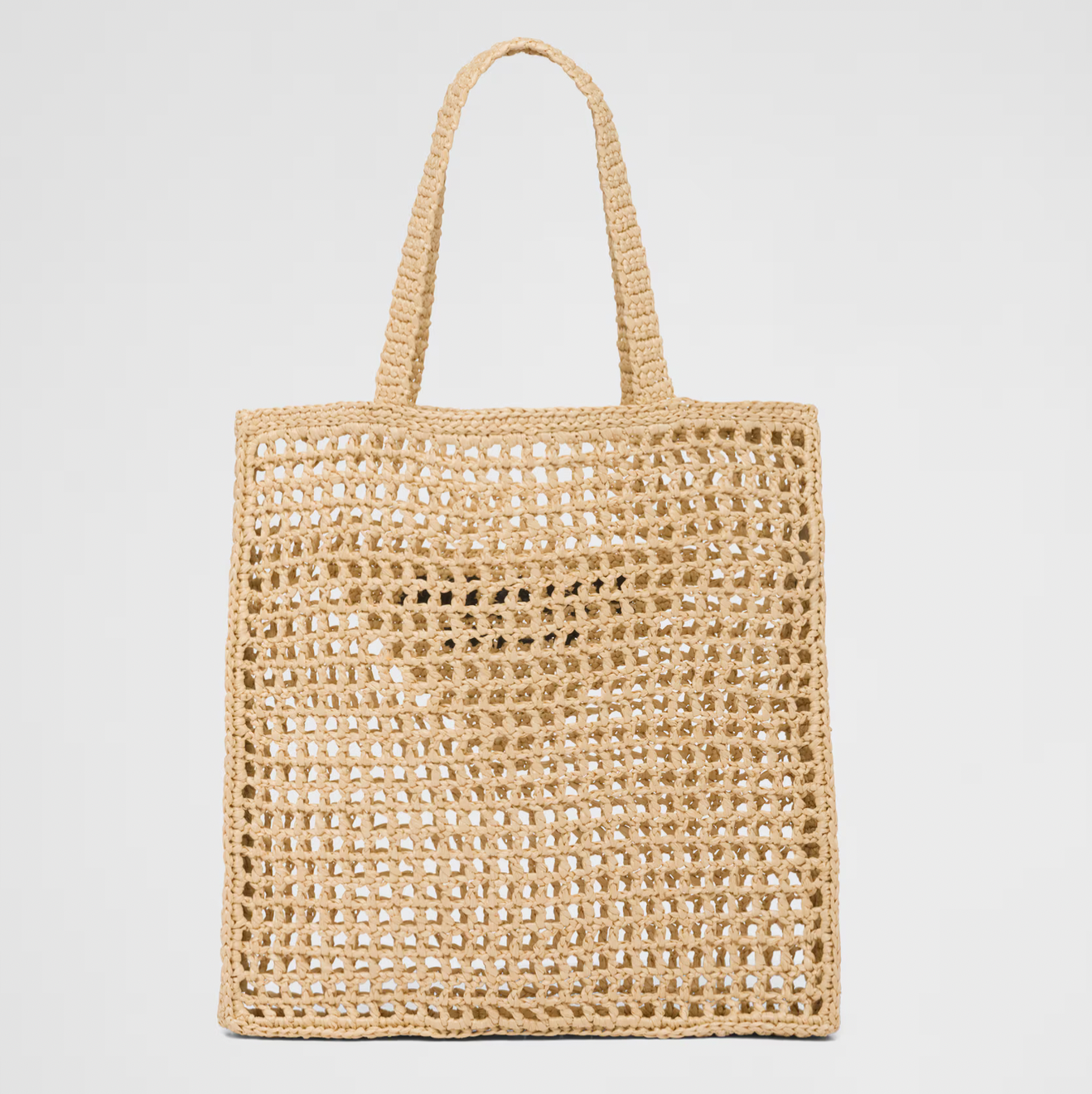 This crochet tote bag with a soft, deconstructed design boasts a light and summery mood. A new interpretation of Prada's emblematic triangle decorates the front and is embellished at its center with the embroidered lettering logo.
