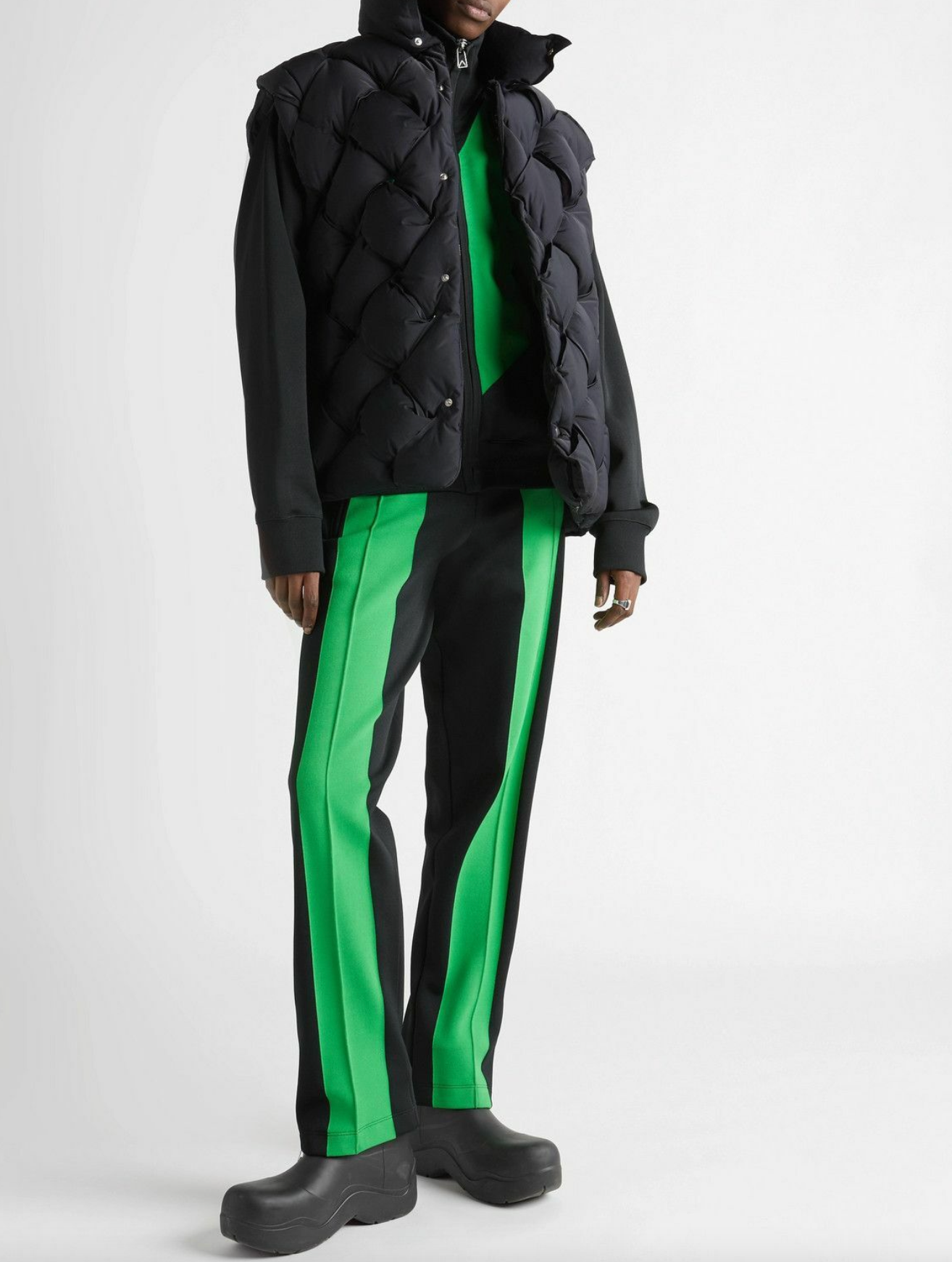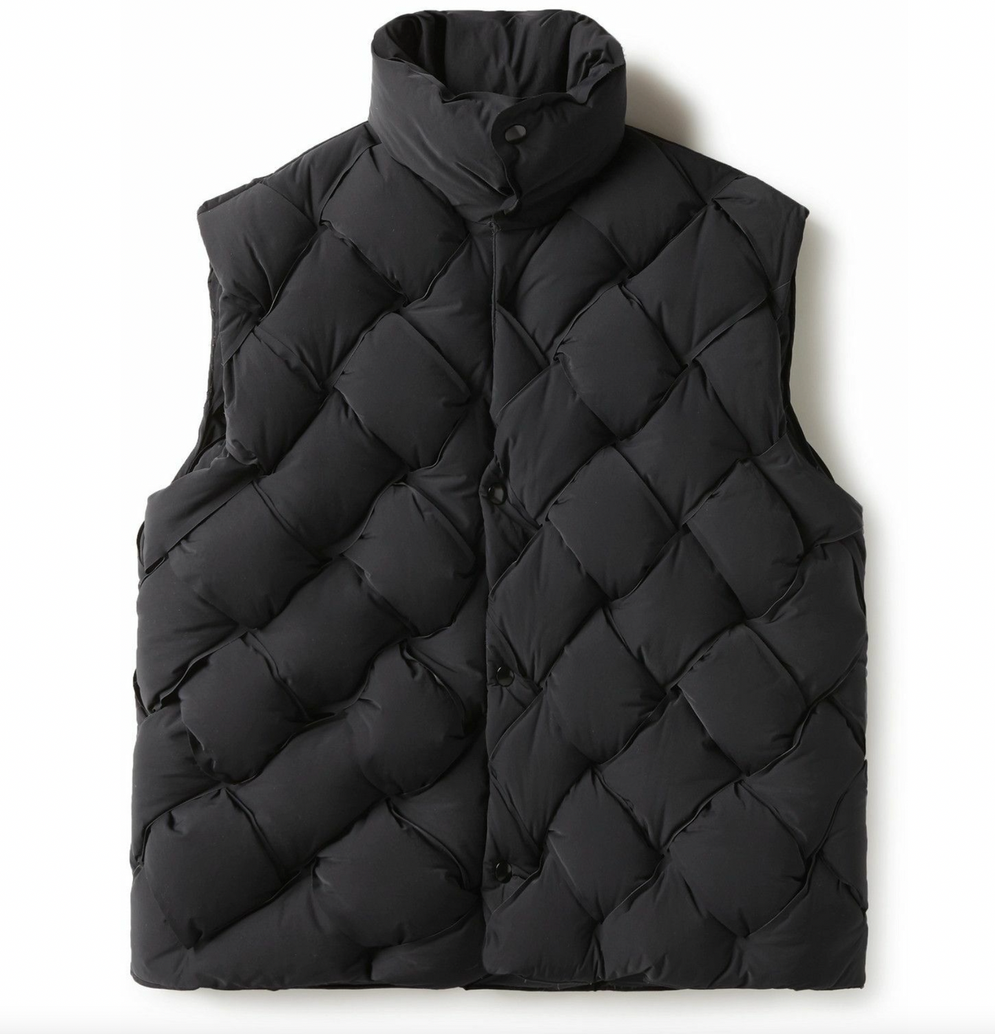 For AW21, Mr Daniel Lee finds ever more inventive new ways to interpret Bottega Veneta's house codes. This gilet is made from strips of padded shell woven in the label's venerated intrecciato technique to mimic quilting. The exaggerated silhouette leaves room to layer a sweater underneath.