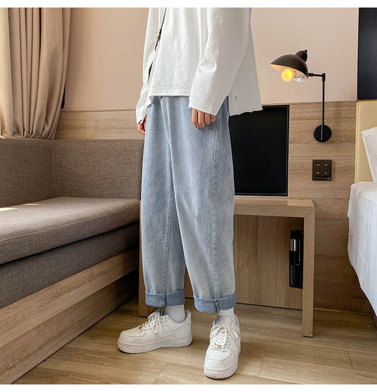 WASHED STRAIGHT LEG JEANS - LIGHT BLUE/ BLACK