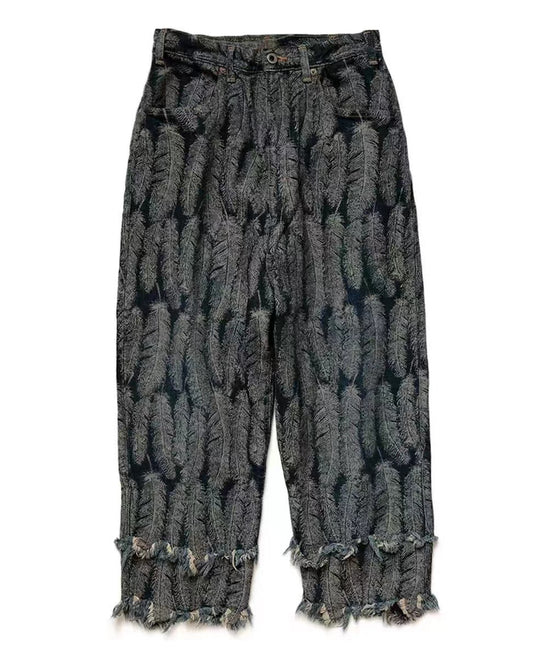 BANDANA PRINTED TWO-TONE STRAIGT LEG JEANS