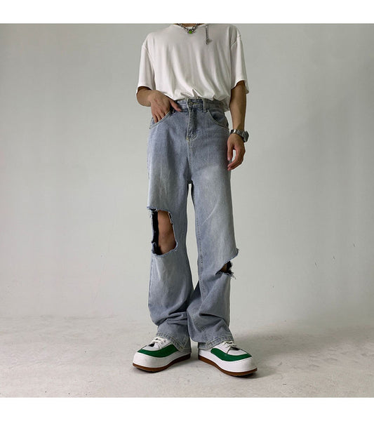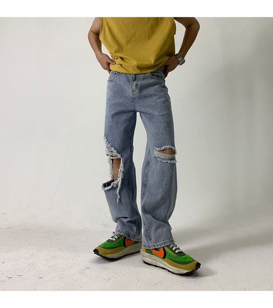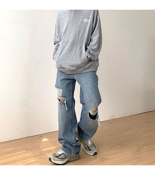 DISTRESSED KNEE-VENTS STRAIGHT LEG JEANS