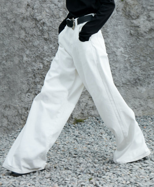 DECONSTRUCTED EXAGGERATED FLARED PATCHWORK JEANS - LIGHT GREY