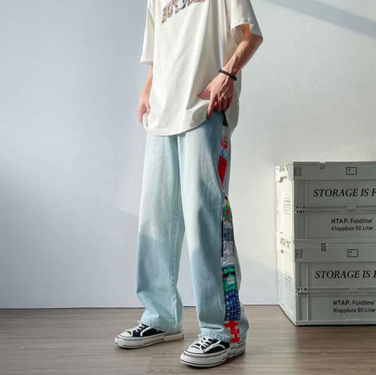 PATCH PANEL STRAIGHT LEG DENIM JEANS