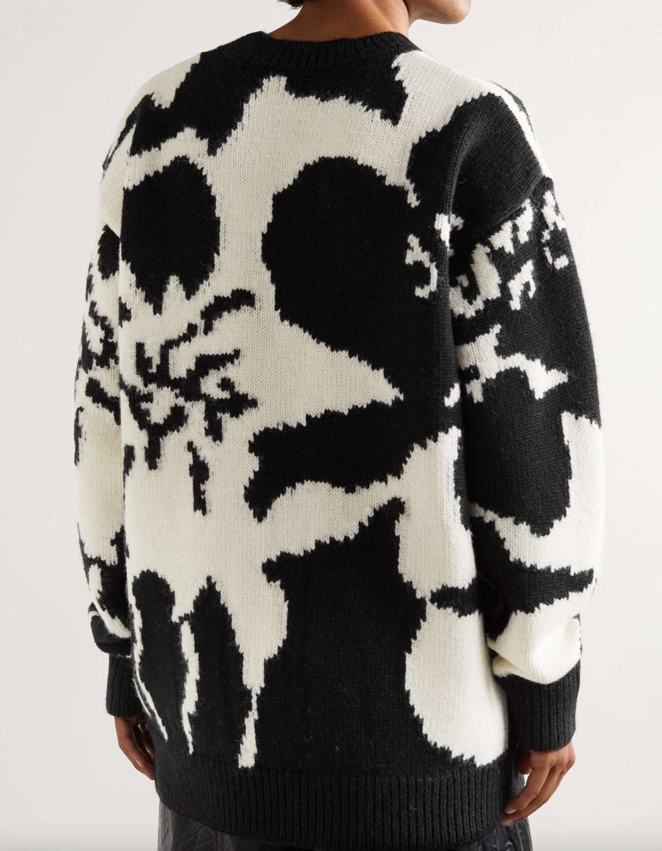 BLACK FLORAL INTARSIA-KNIT WOOL SWEATER