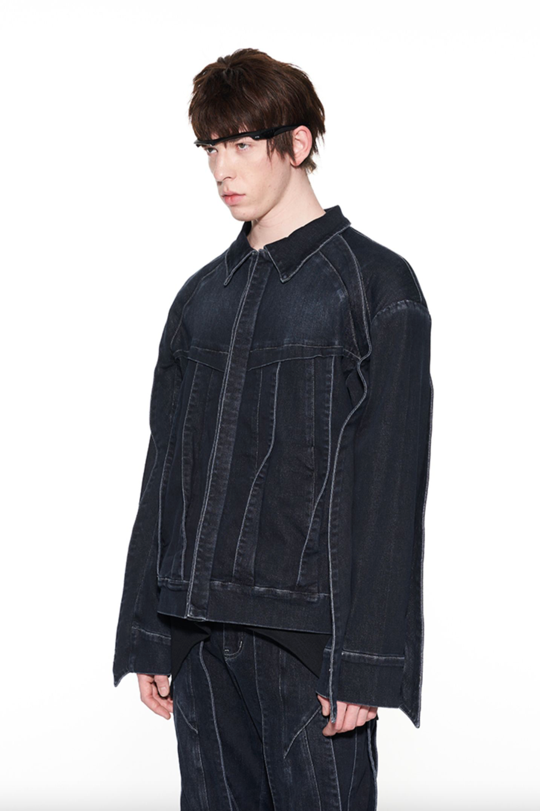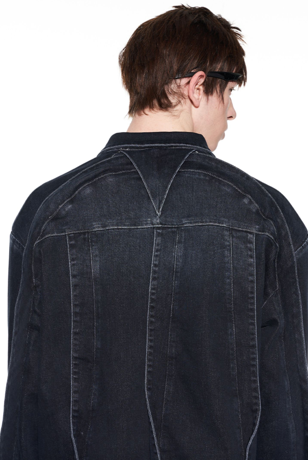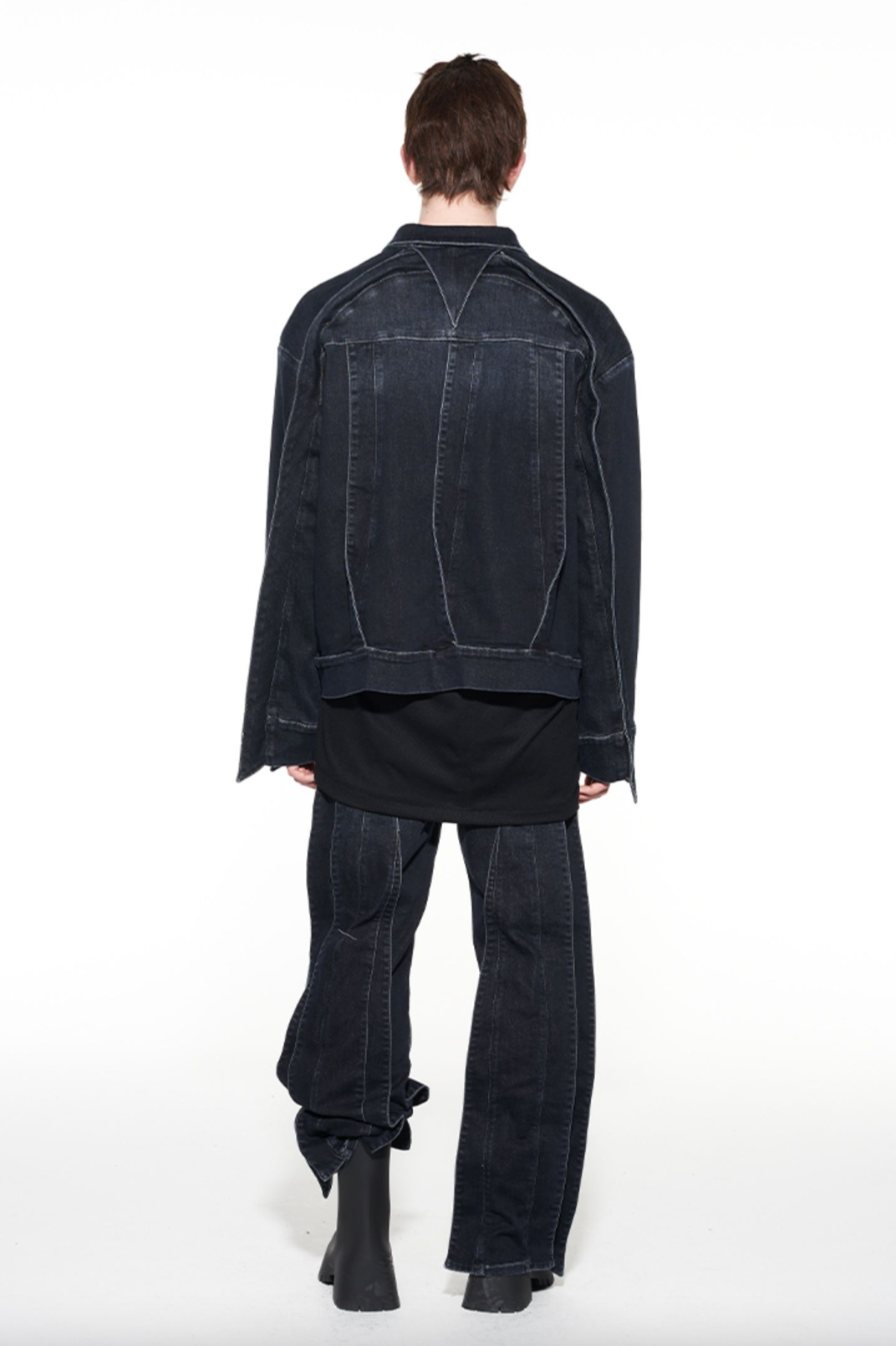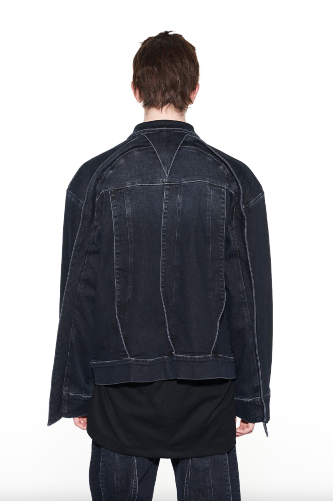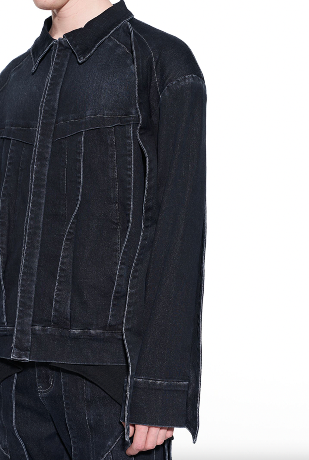 MULTI-LAYERED PANELS DENIM JACKET - BLACK