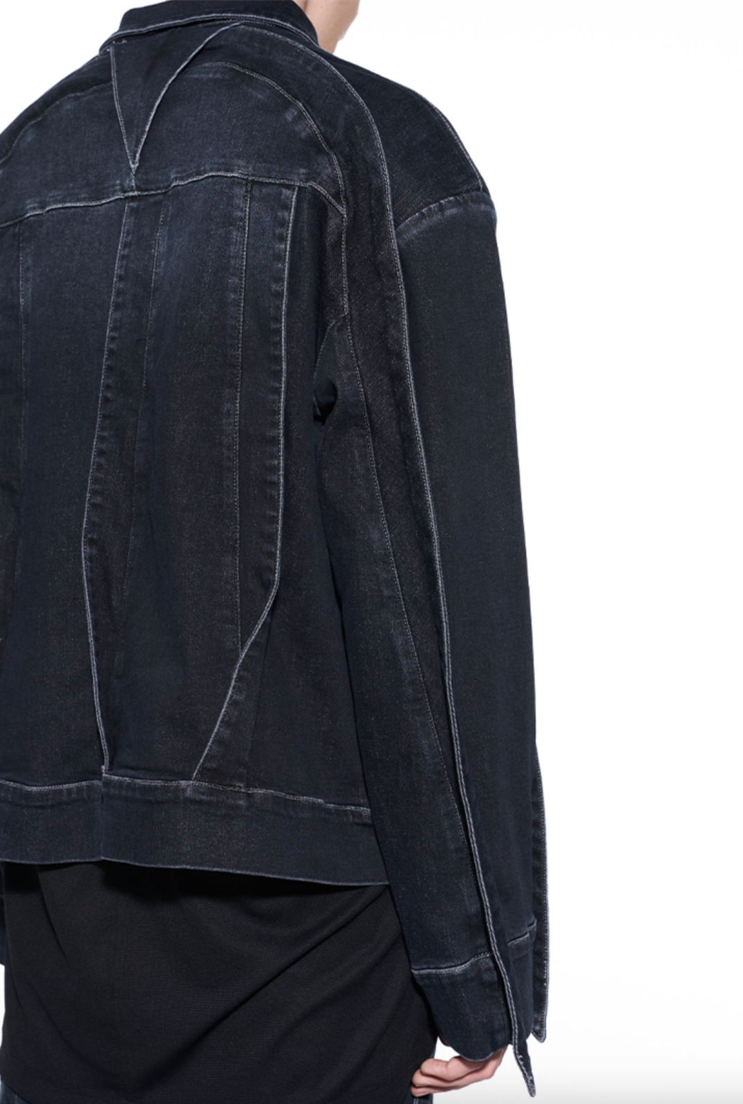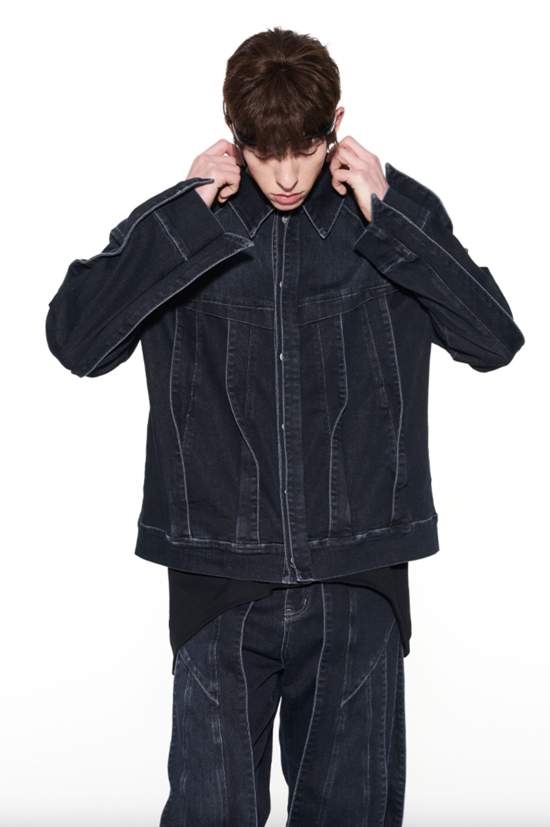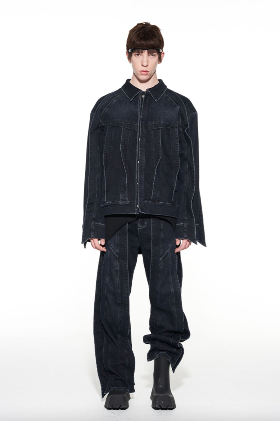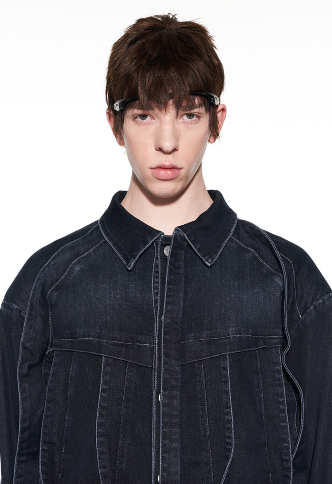 MULTI-LAYERED PANELS DENIM JACKET - BLACK
