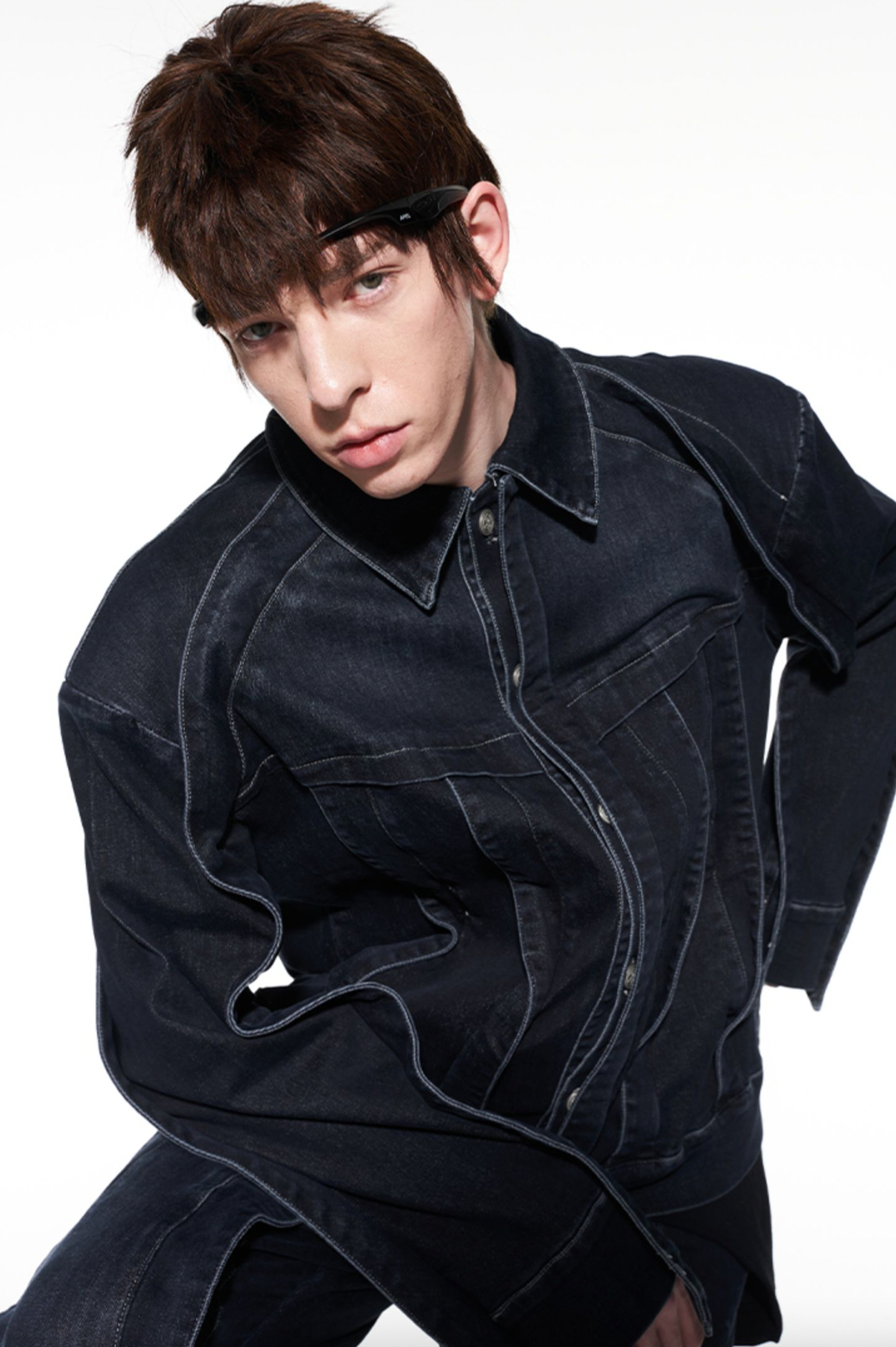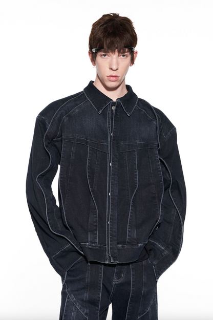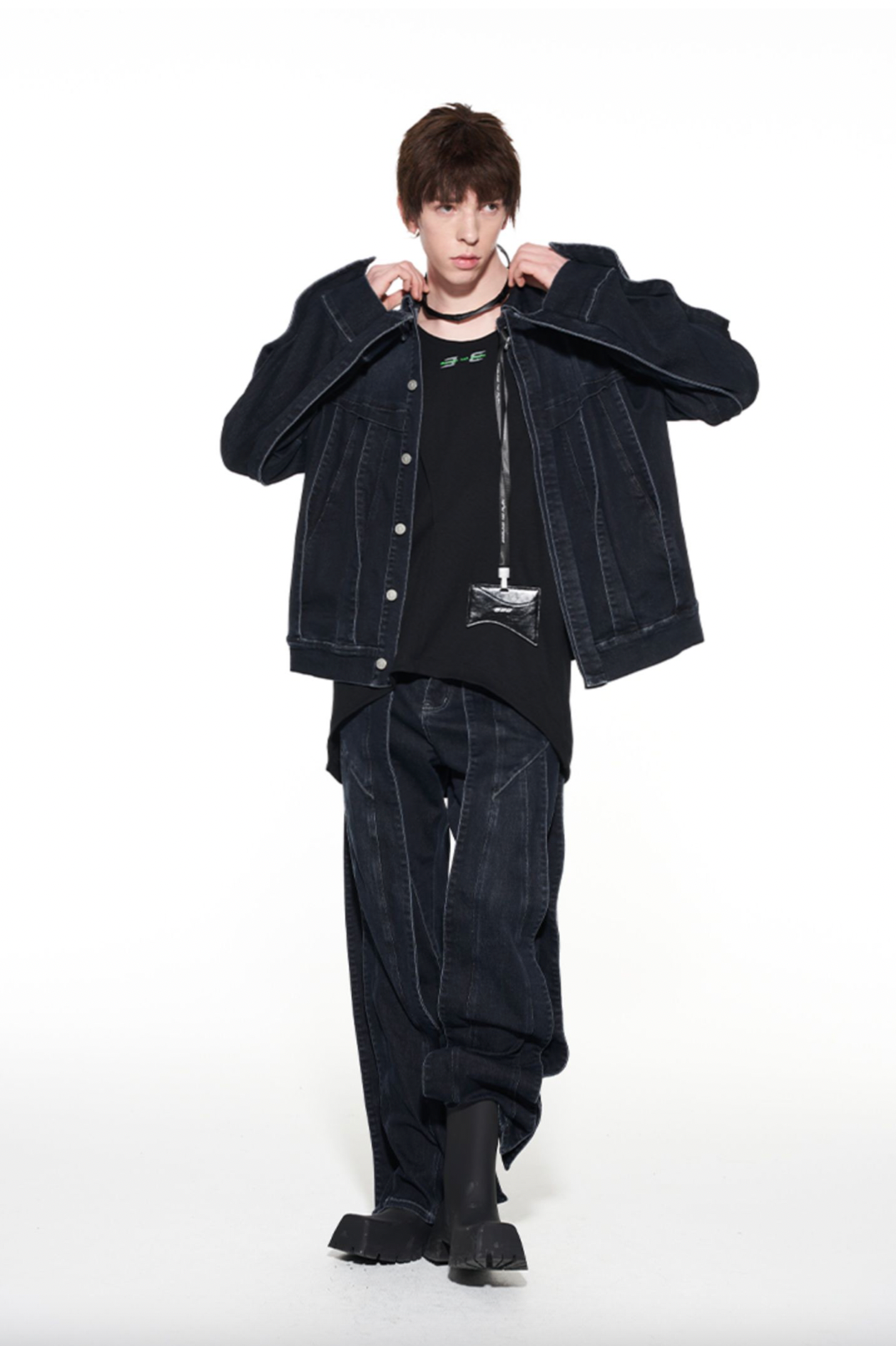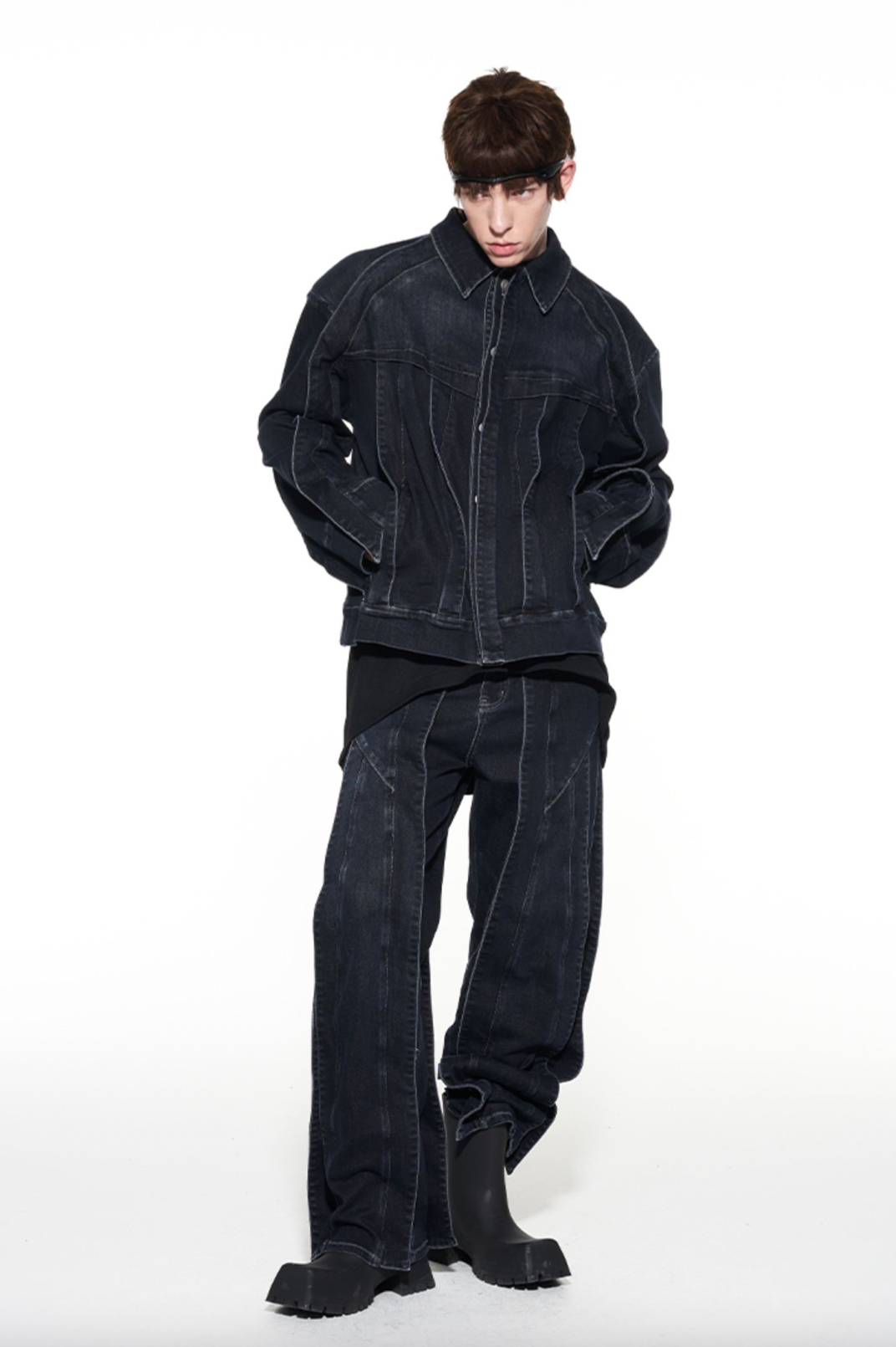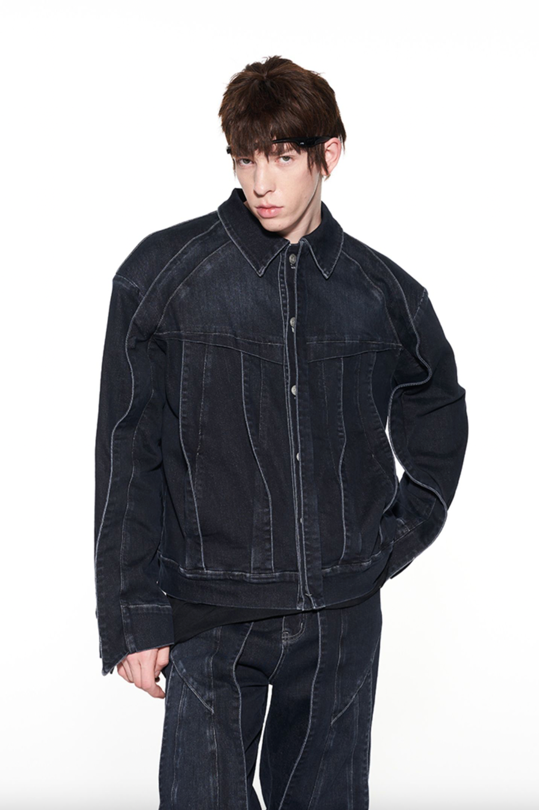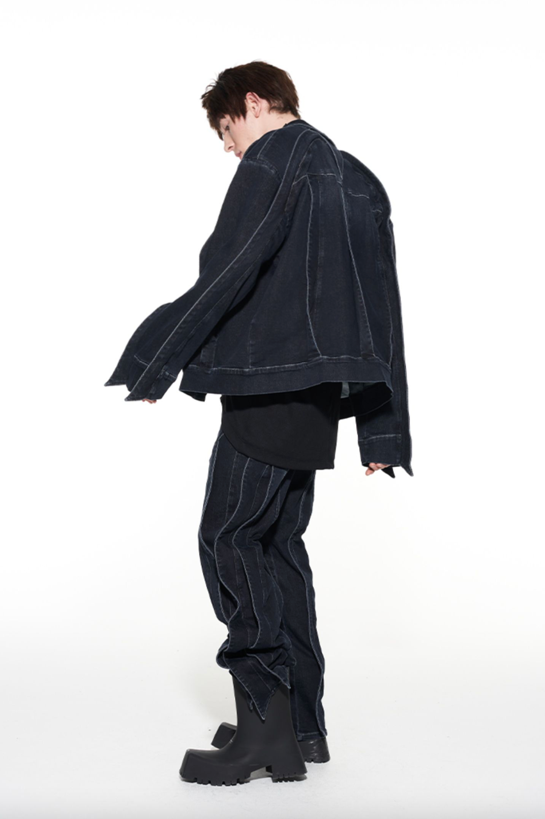 MULTI-LAYERED PANELS DENIM JACKET - BLACK