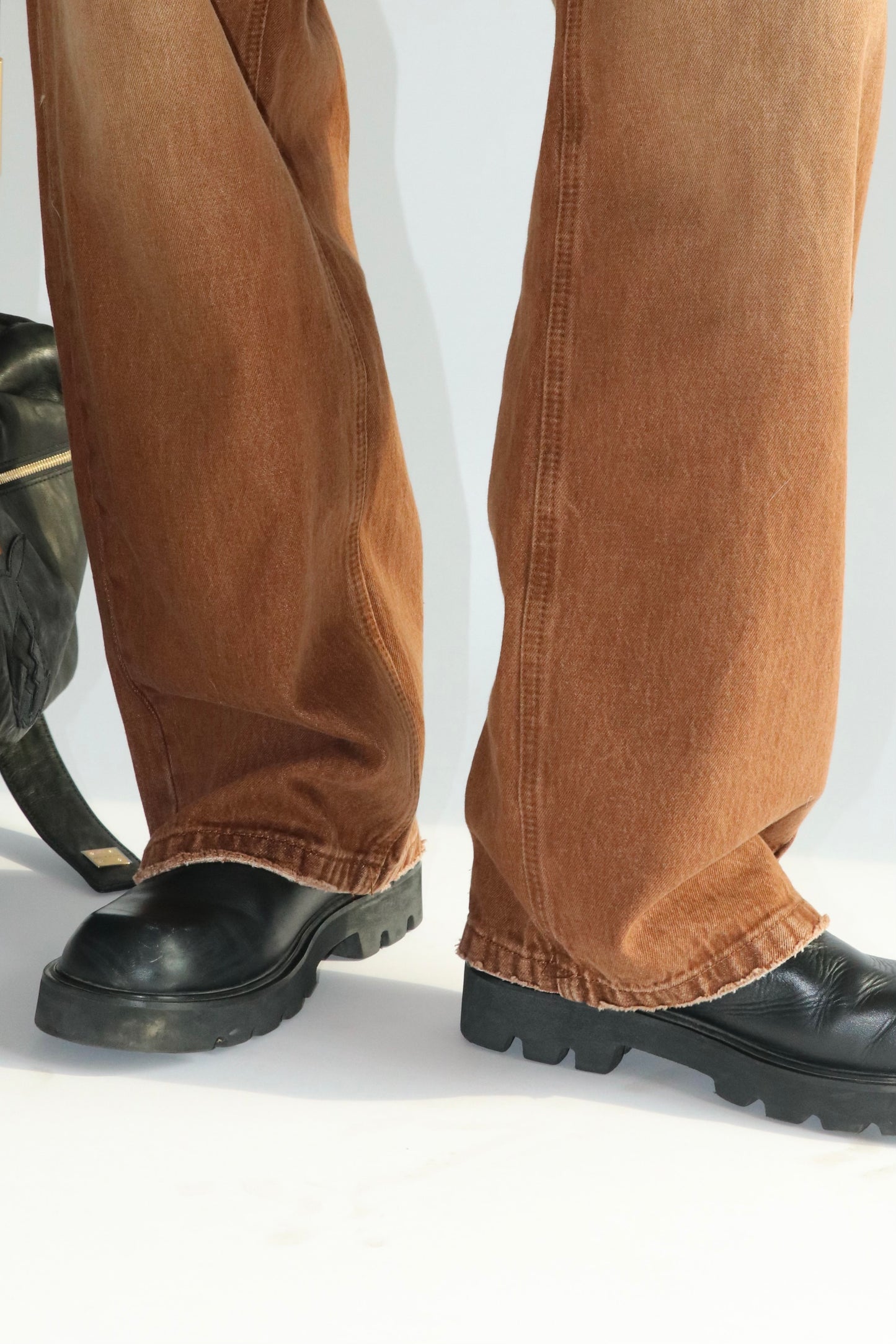 This loose jeans are designed in a wider fit through out the legs compared to other wide leg jeans you could find out there. A throwback to the 70's. Wide-design front pockets offer a concealed coin pocket at one side, which is visible through the rivets on the outside. These jeans will be delivered in an A-line silhouettes, giving it a sharper look with a 70's appeal.