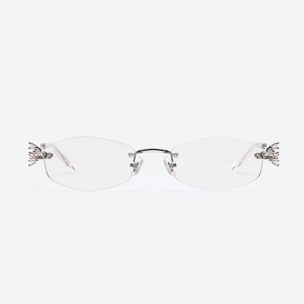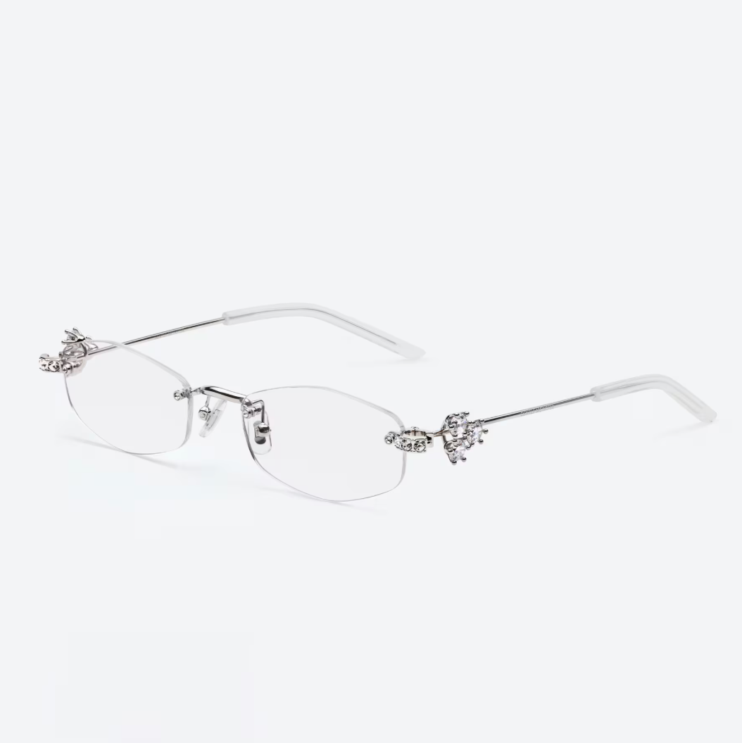 Discover the Glitz 02 sunglasses from Gentle Monster's 2025 Jewelry Collection. This piece features oval sunglasses in silver metal, reminiscent of precious jewelry.