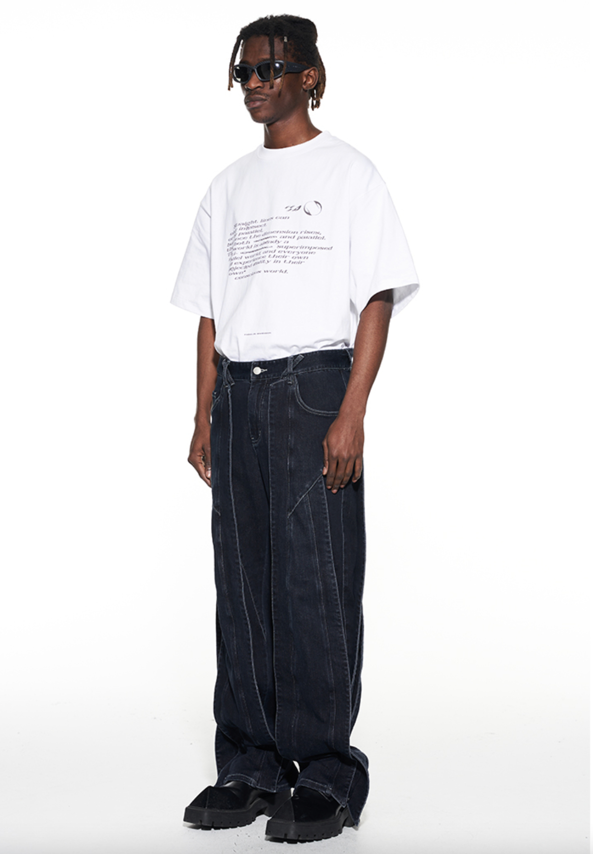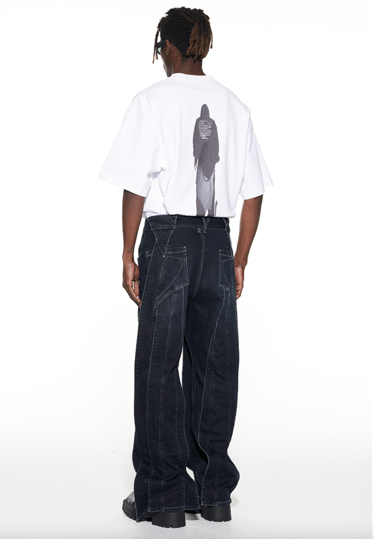 Blind No Plan is renowned for its ability to reinterpret classic styles into innovative pieces and these classic straight jeans are a perfect example. These jeans feature multi-flip panel as details that run up of each leg, allowing the wearer to play with the shape and volume of the garment for an ever-evolving look.