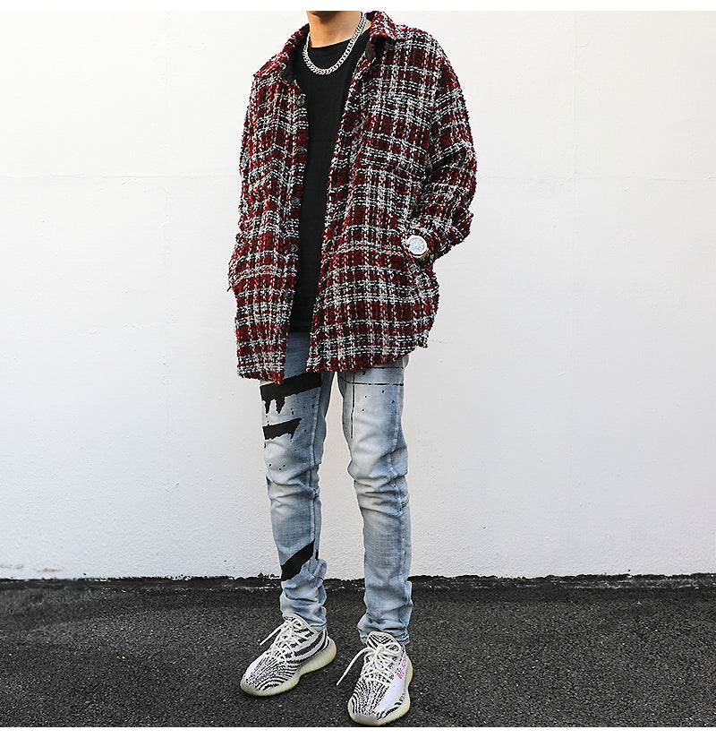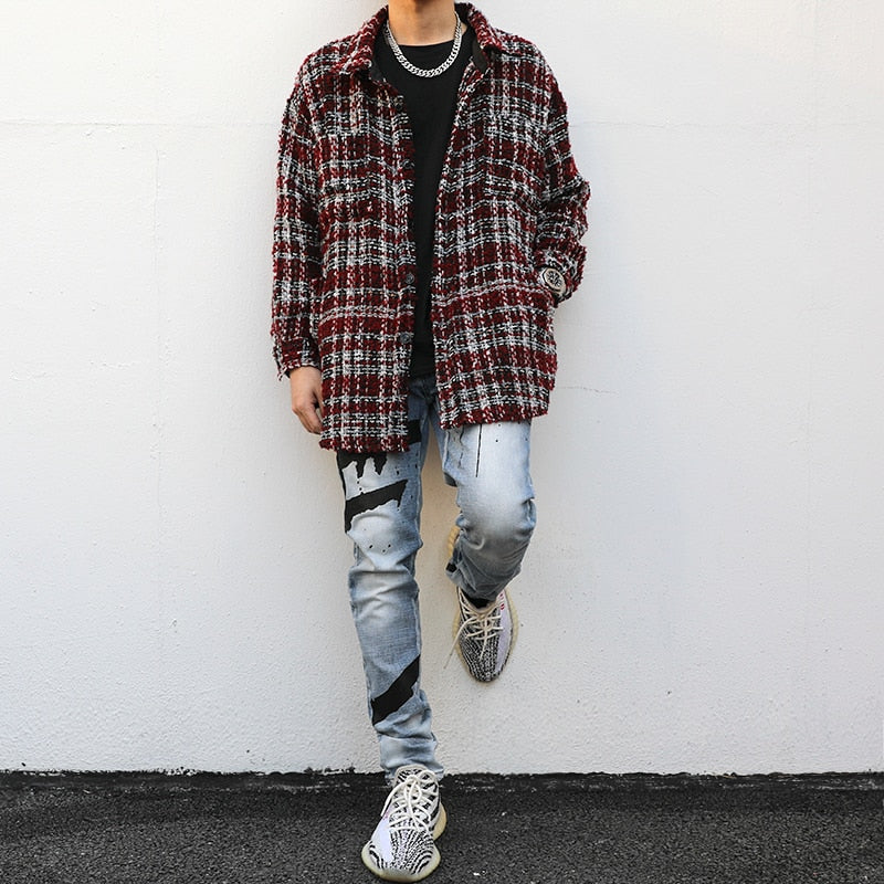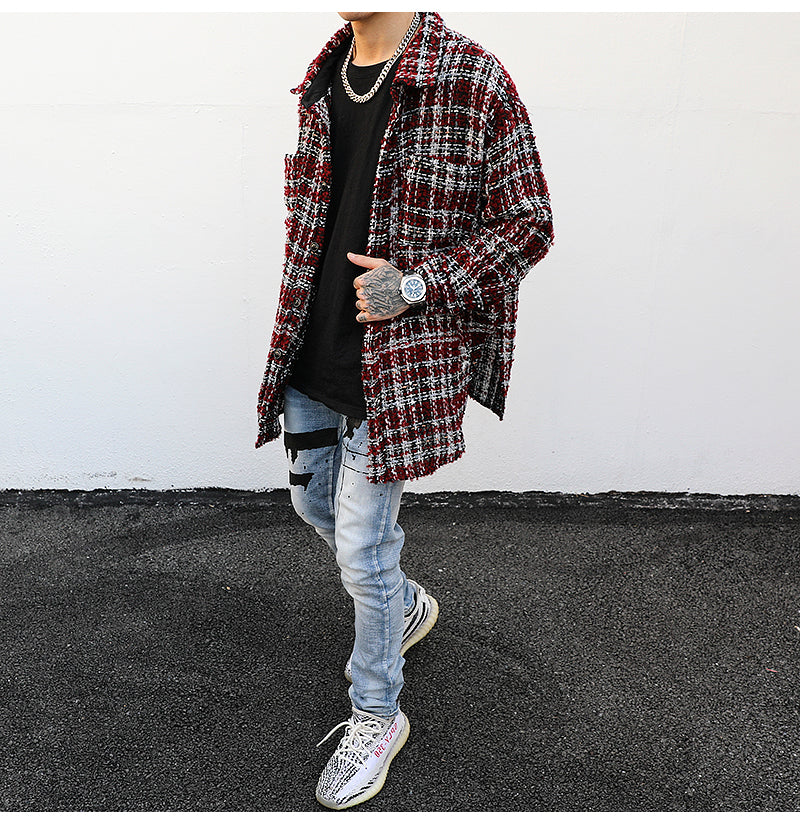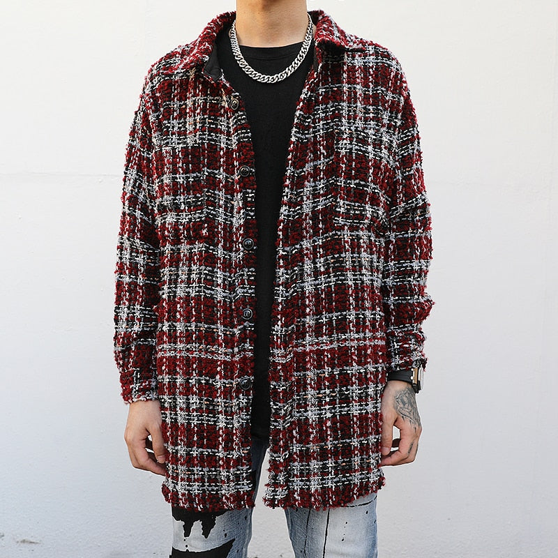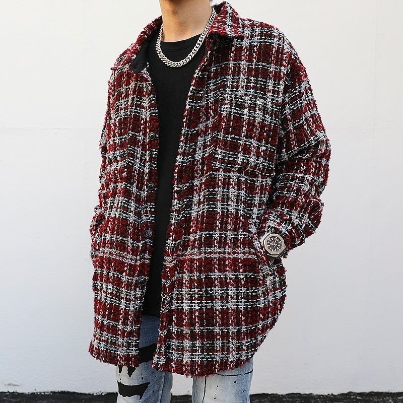 SURCHEMISE À CARREAUX EN TWEED DE LAINE