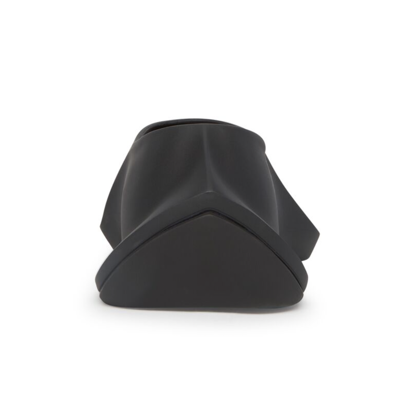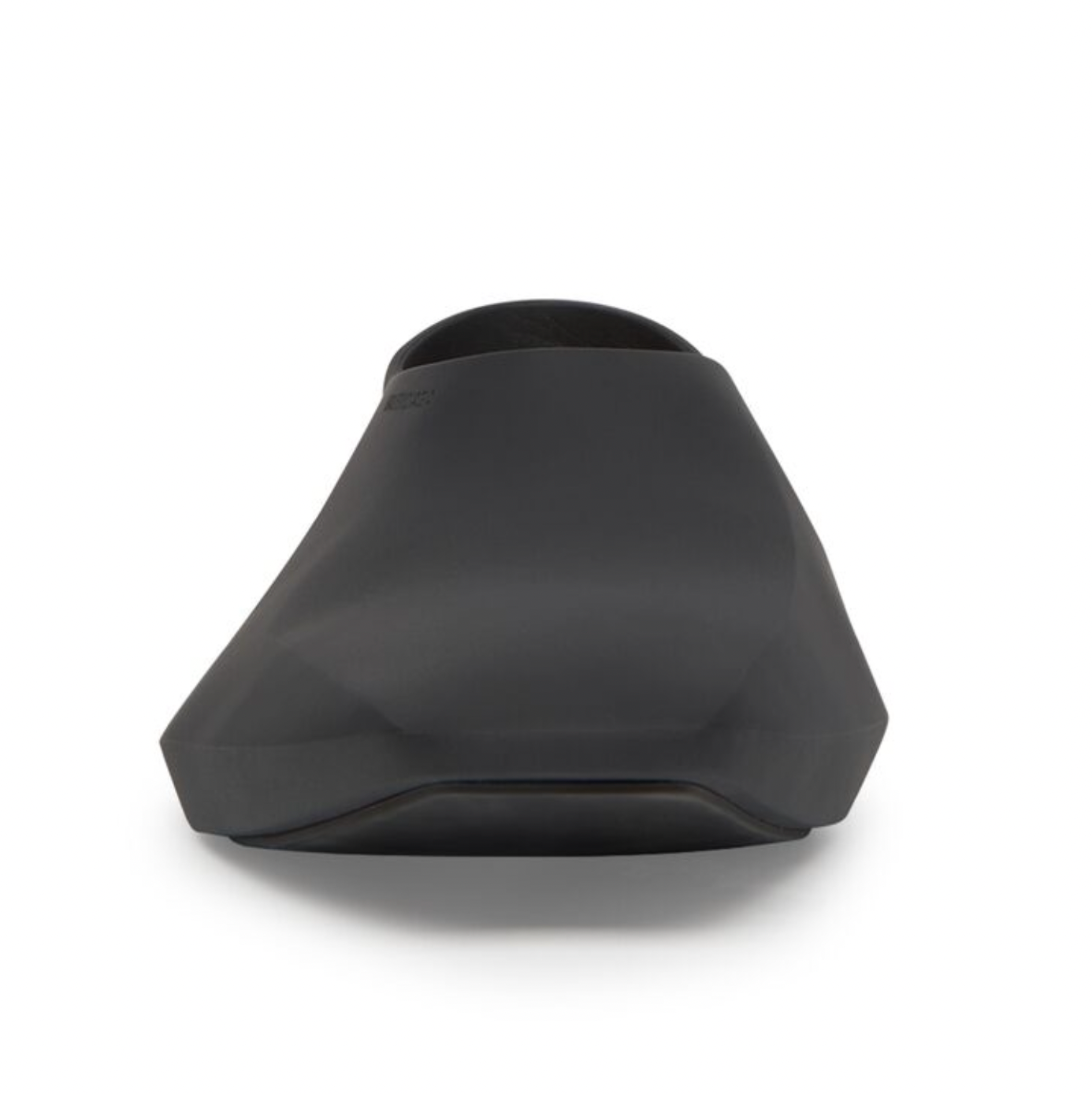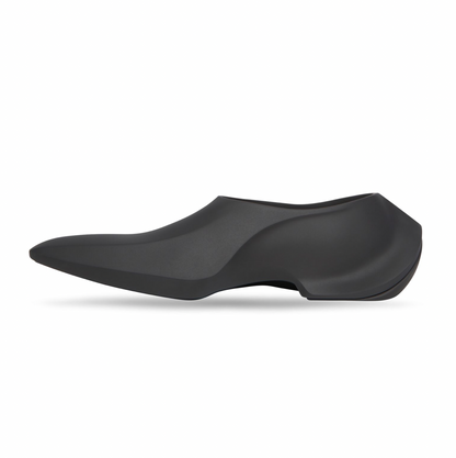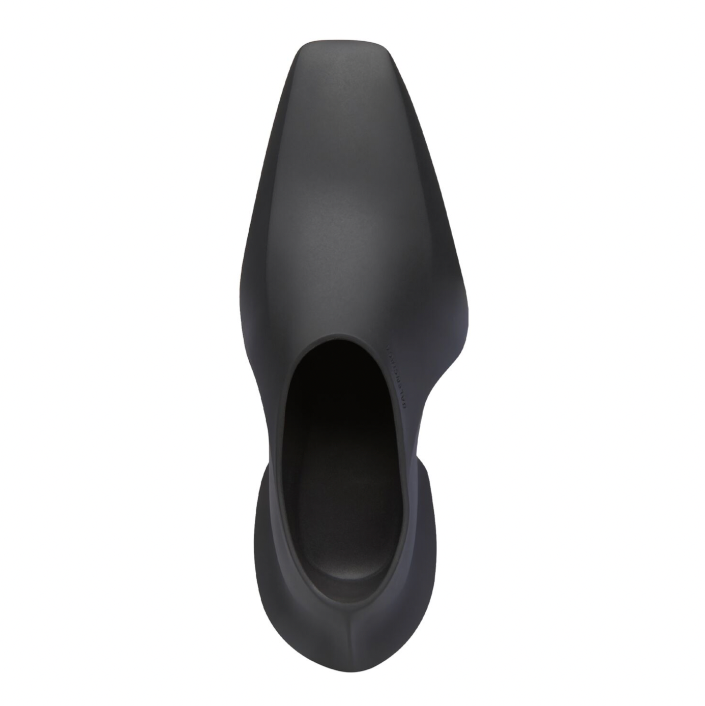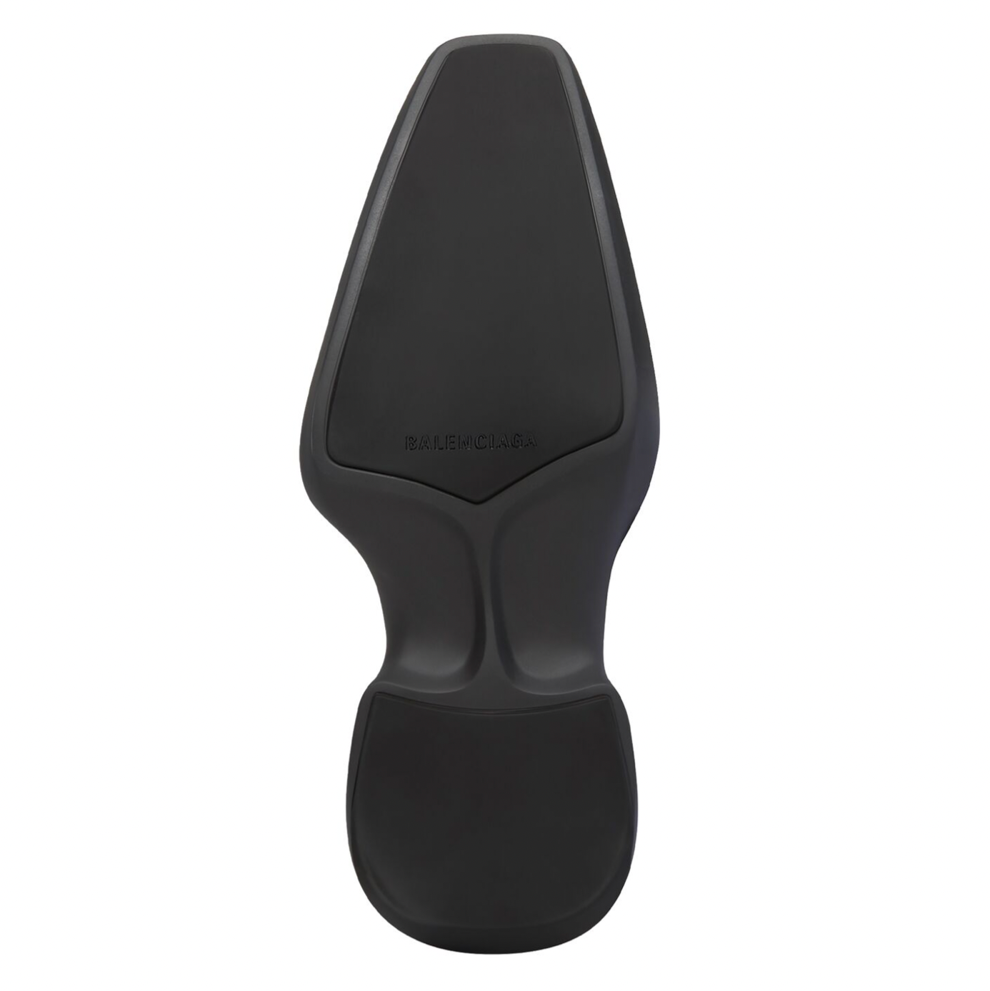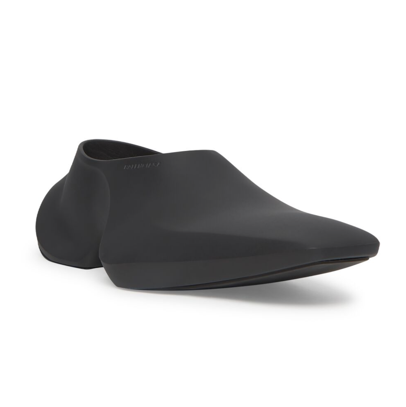 Balenciaga Space Shoe in matte black rubber is in several looks of the Balenciaga’s Summer 22, Red Carpet Collection. The Space Shoe is a highly innovative single mold alternative to the classic derby.