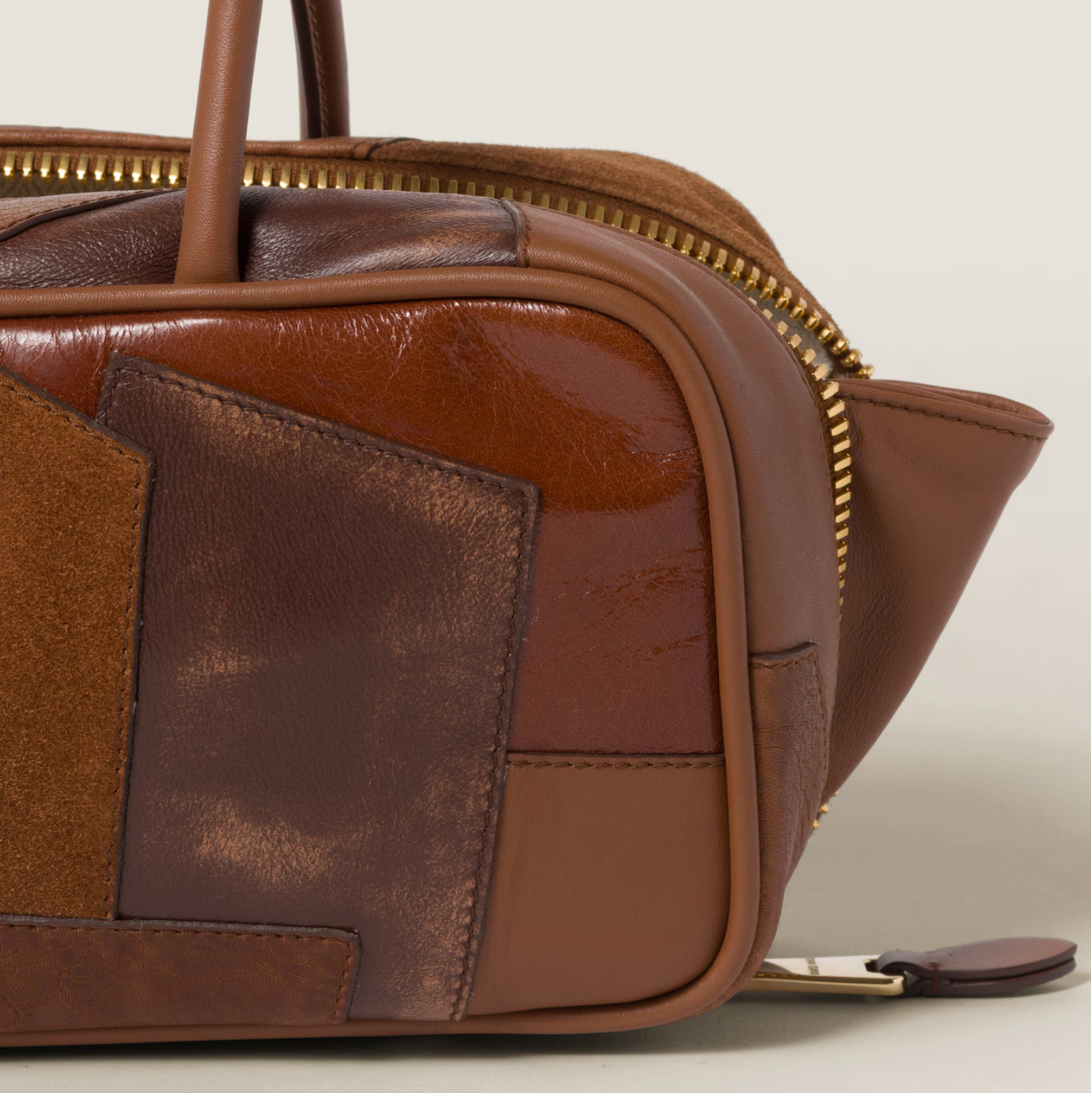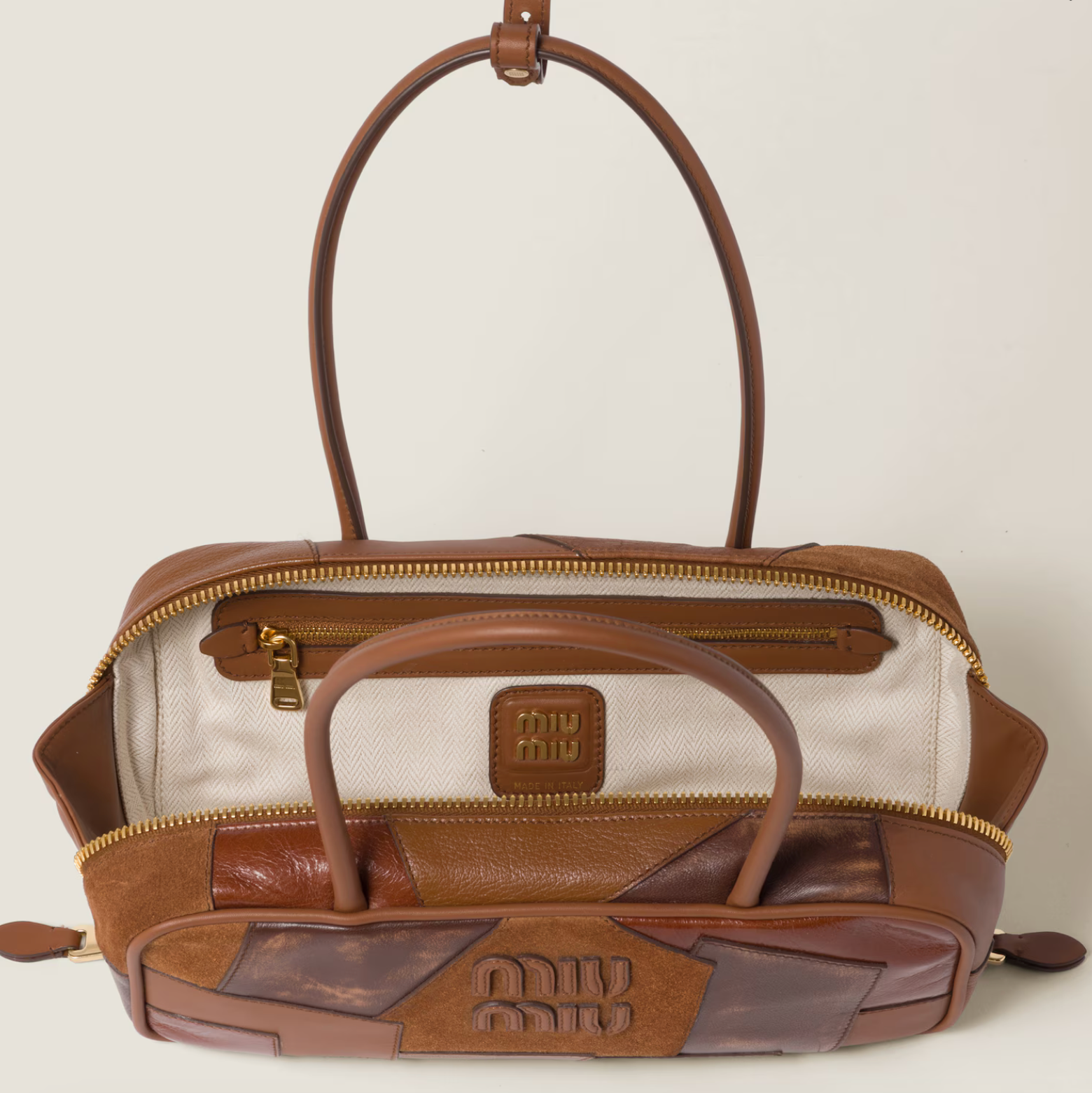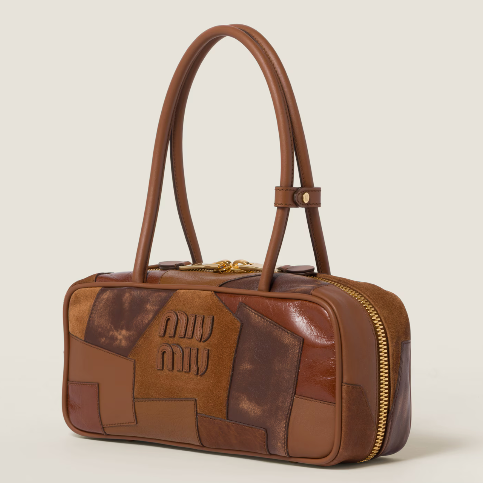 MIU MIU BEAU LEATHER PATCHWORK BAG - COGNAC