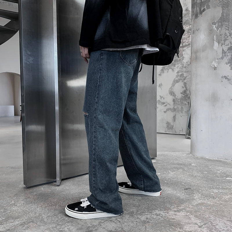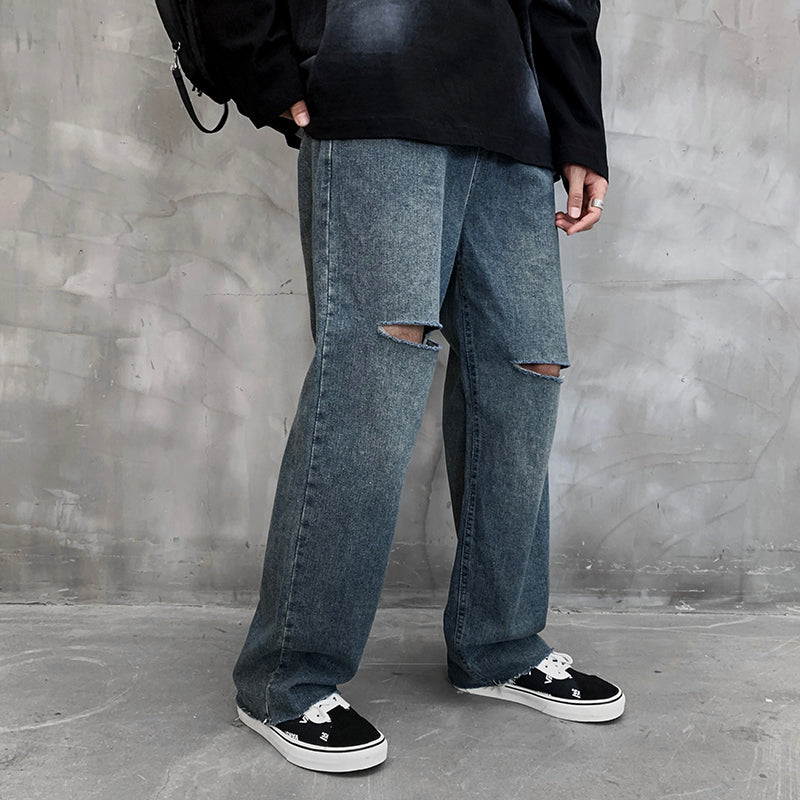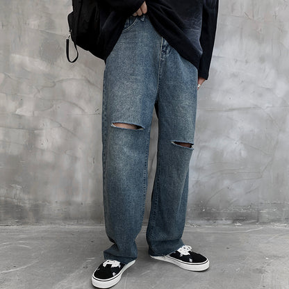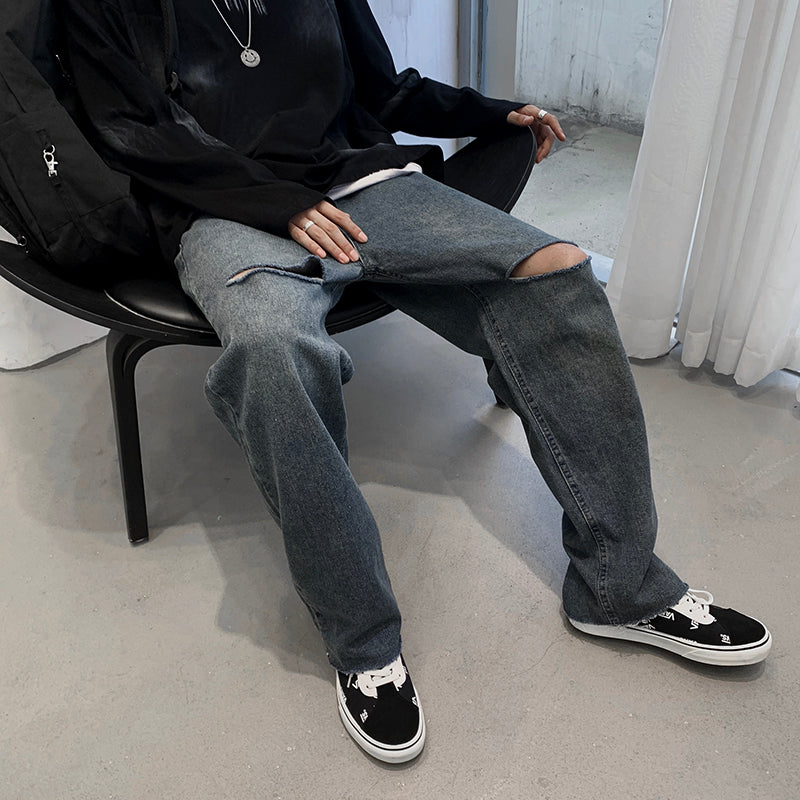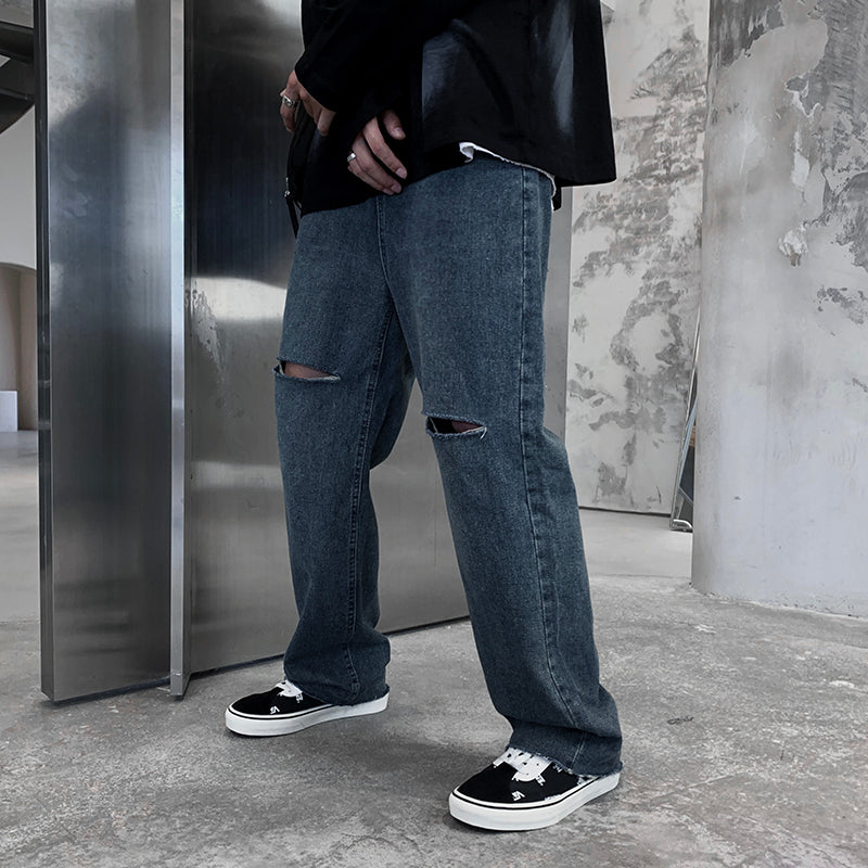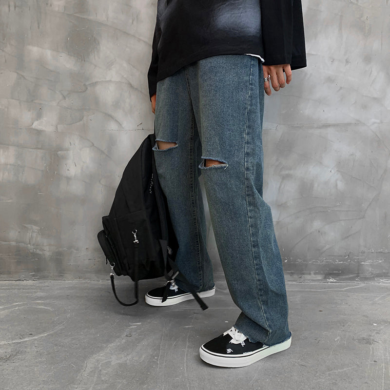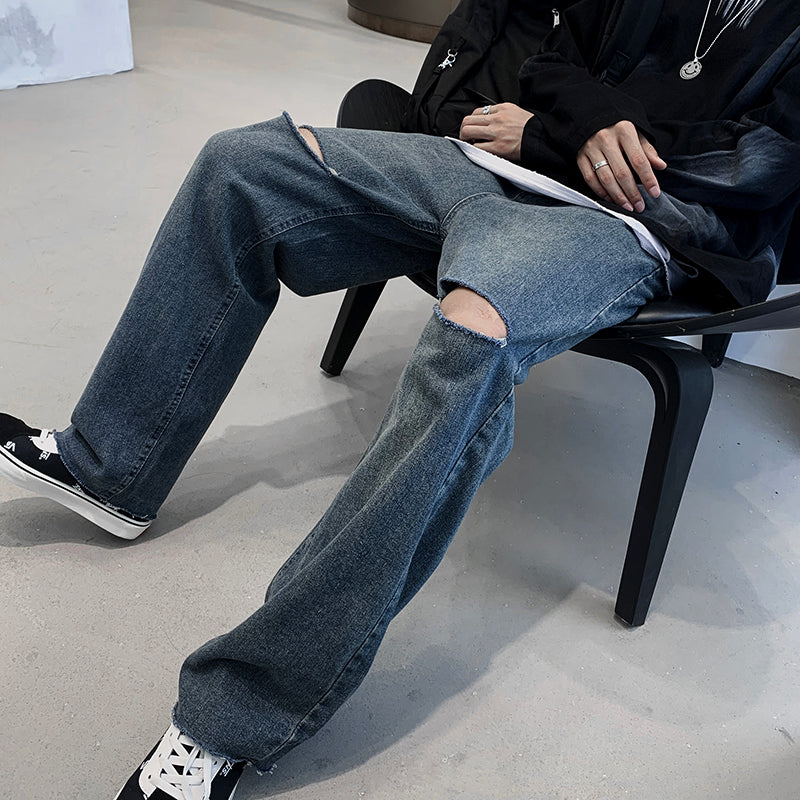 JEAN DROIT AVEC FENTES AUX GENOUX ET USÉ