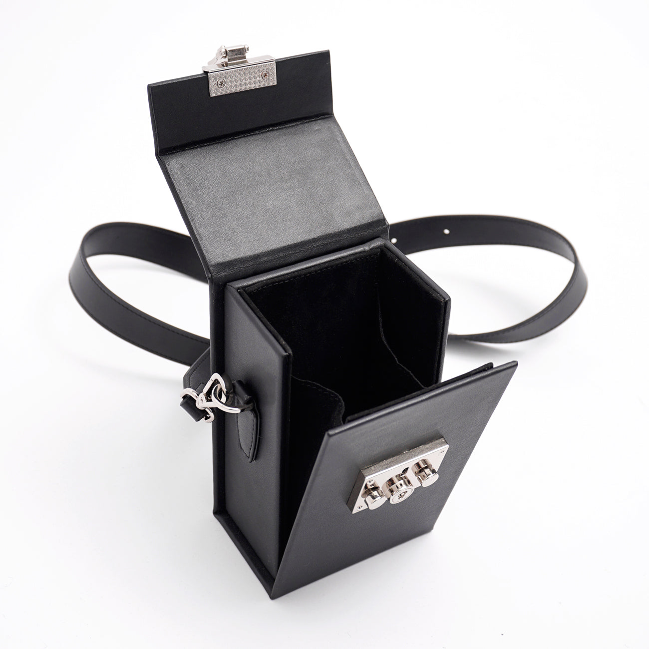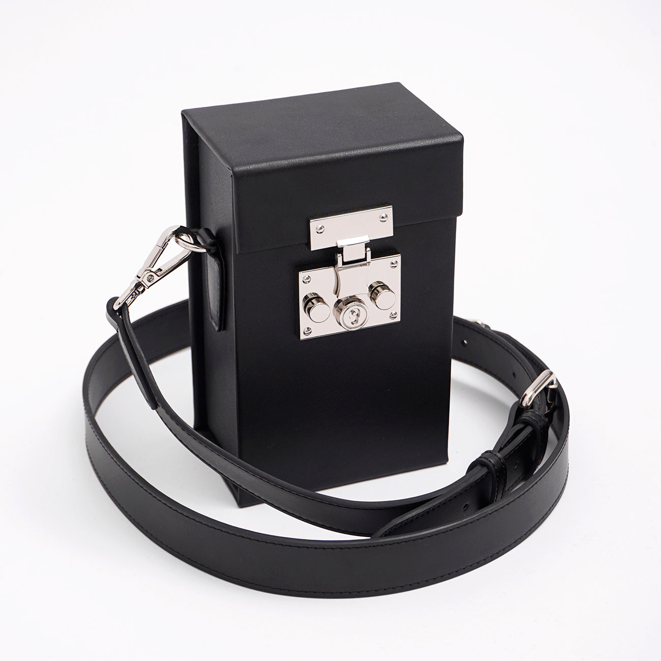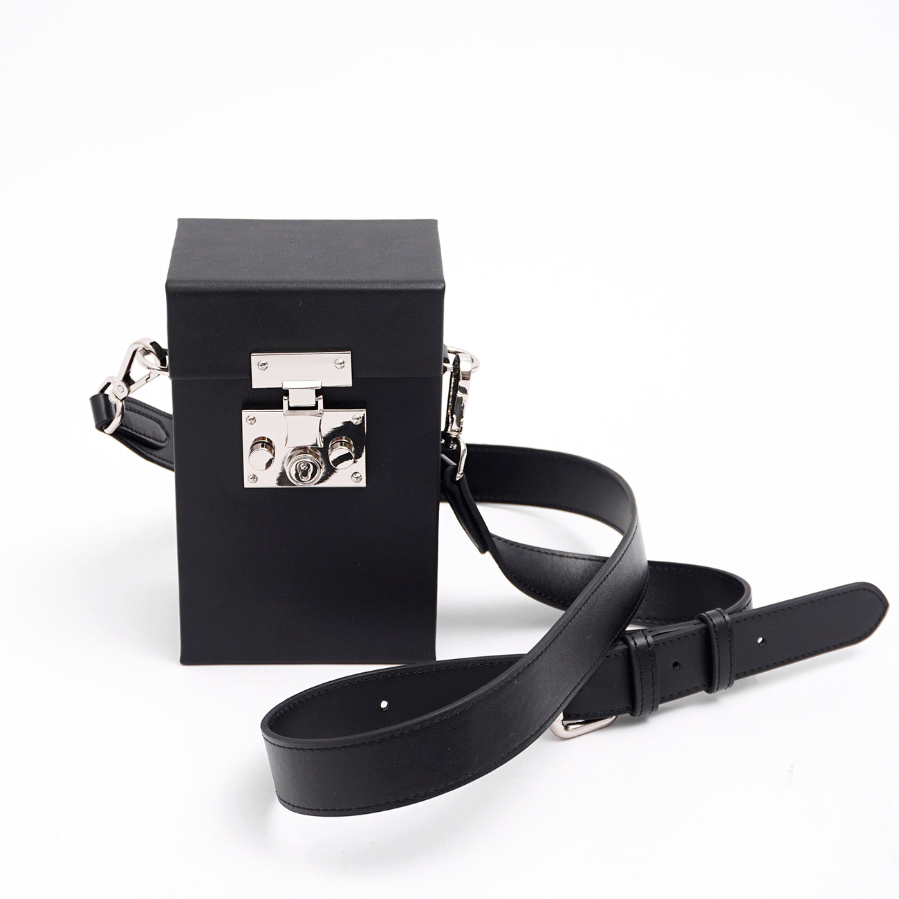 Ce Lock Bag en cuir finition argent avec un mécanisme de serrure en laiton. Le sac a une bandoulière amovible et réglable, un compartiment principal avec une poche à soufflet facile d'accès.