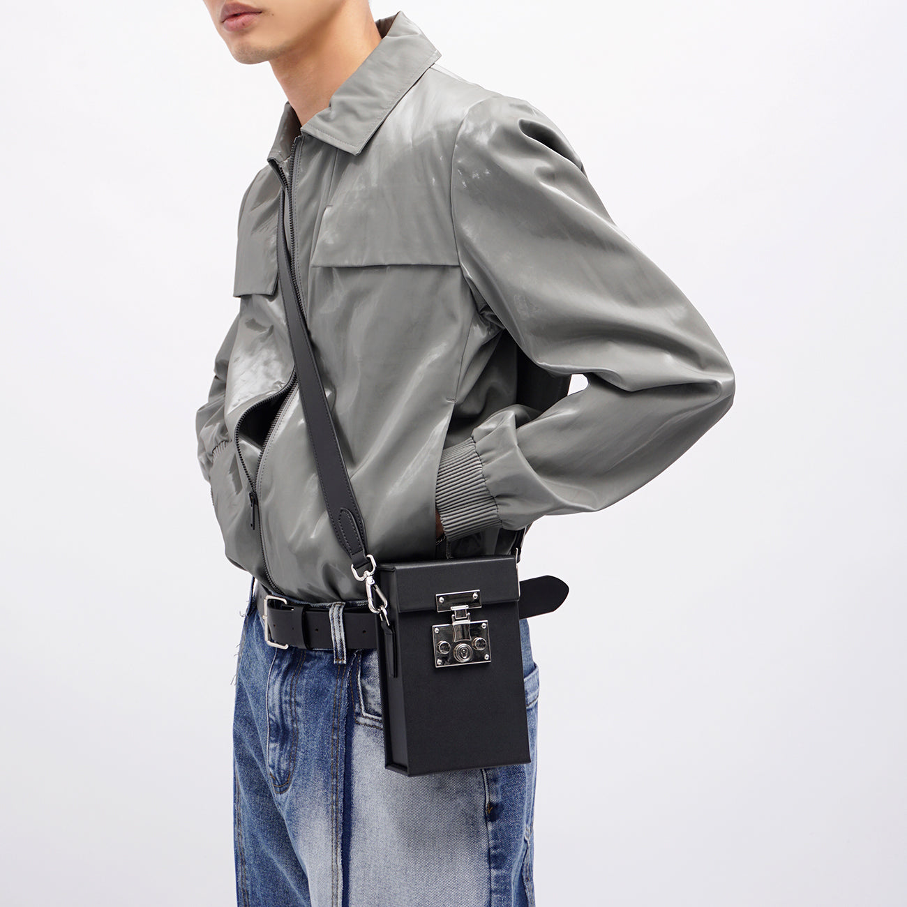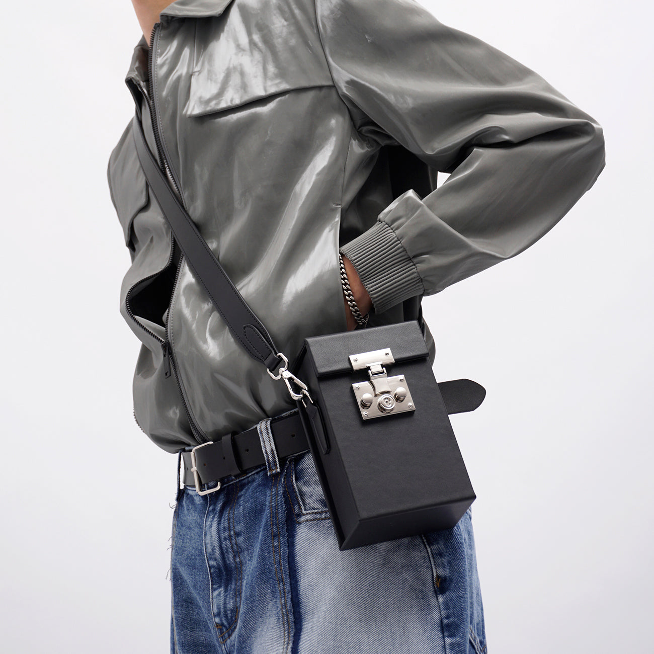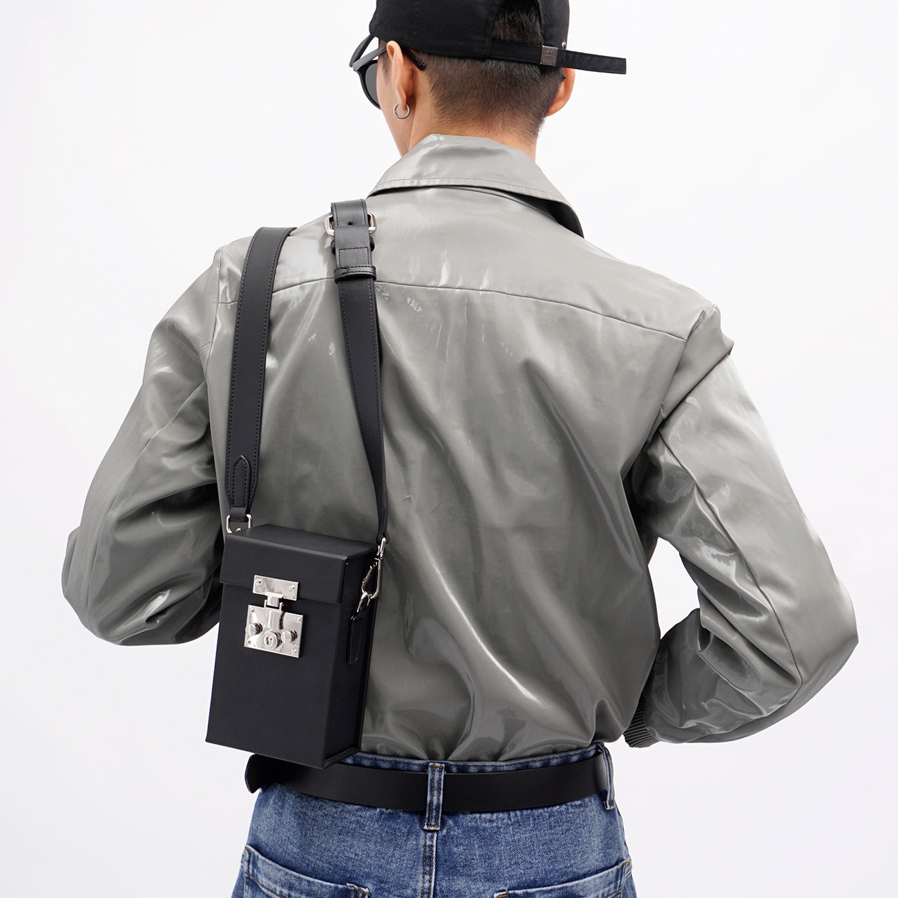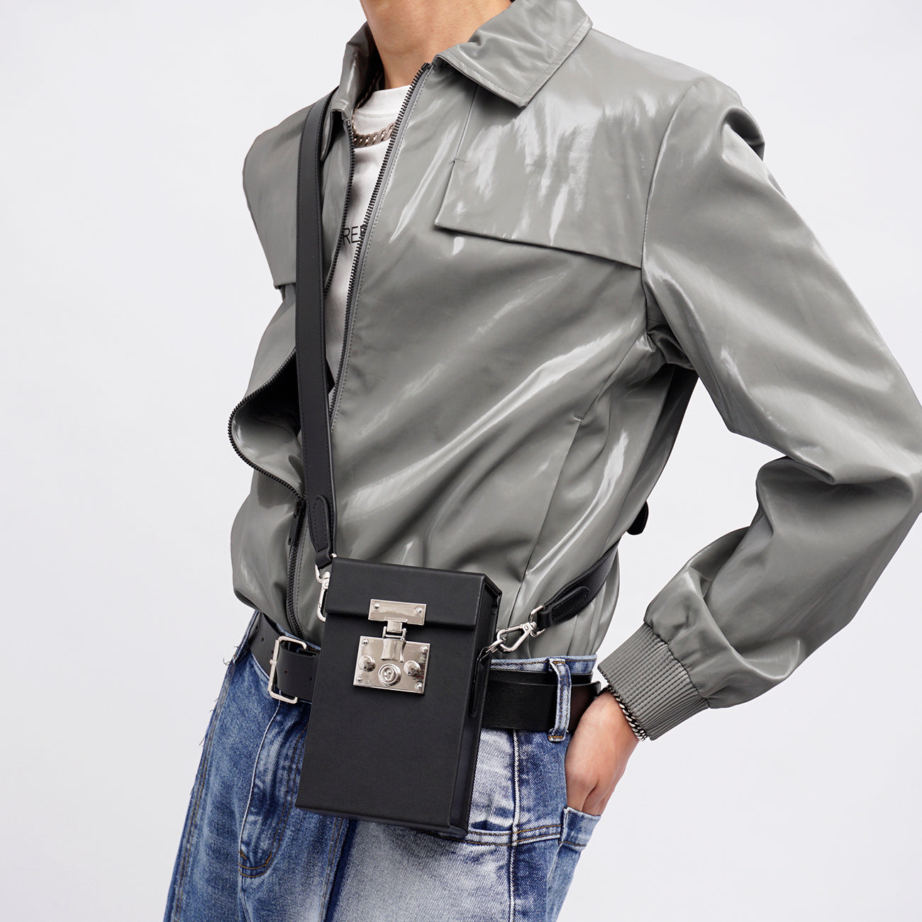 Ce Lock Bag en cuir finition argent avec un mécanisme de serrure en laiton. Le sac a une bandoulière amovible et réglable, un compartiment principal avec une poche à soufflet facile d'accès.
