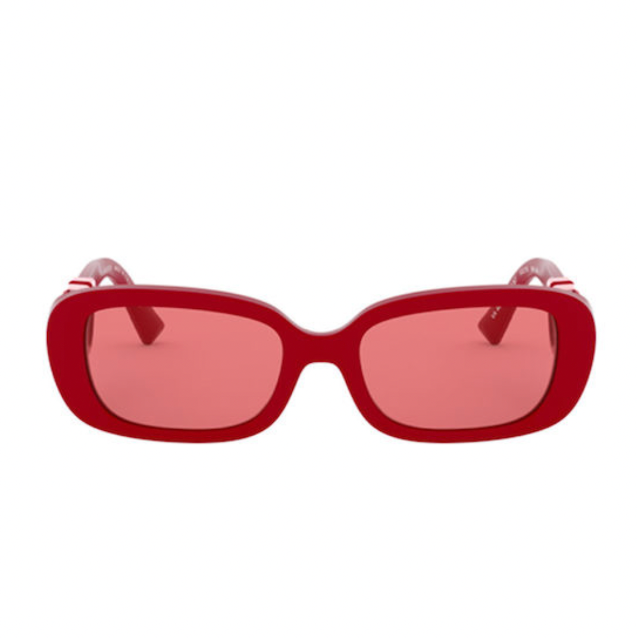 - Narrow oval shape for this new Valentino sunglasses in red celluloid total red version.