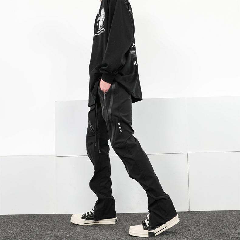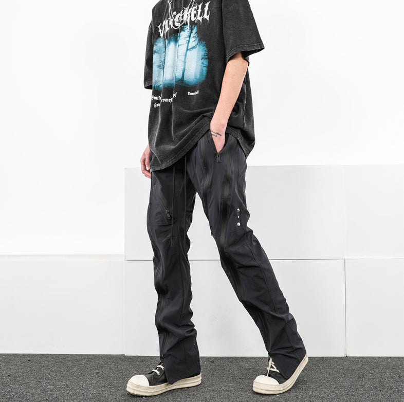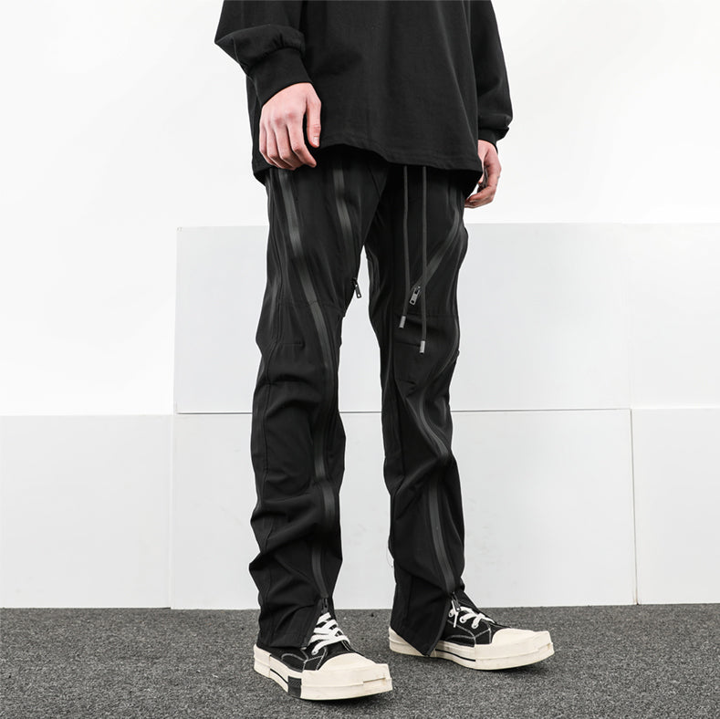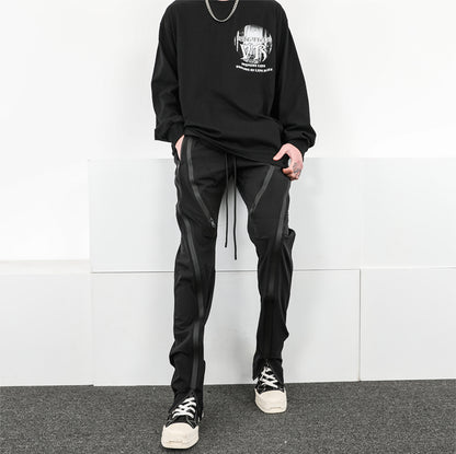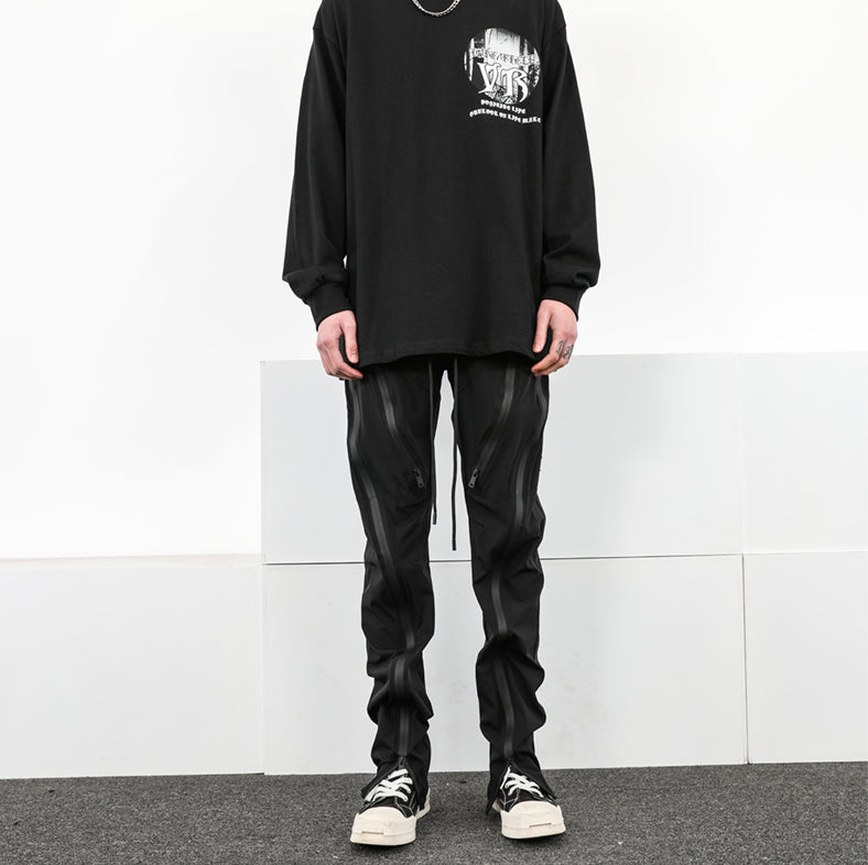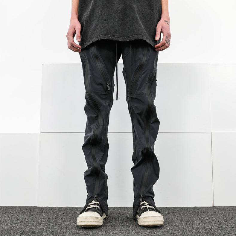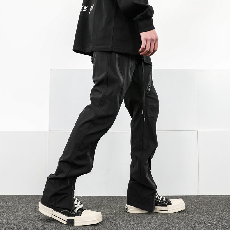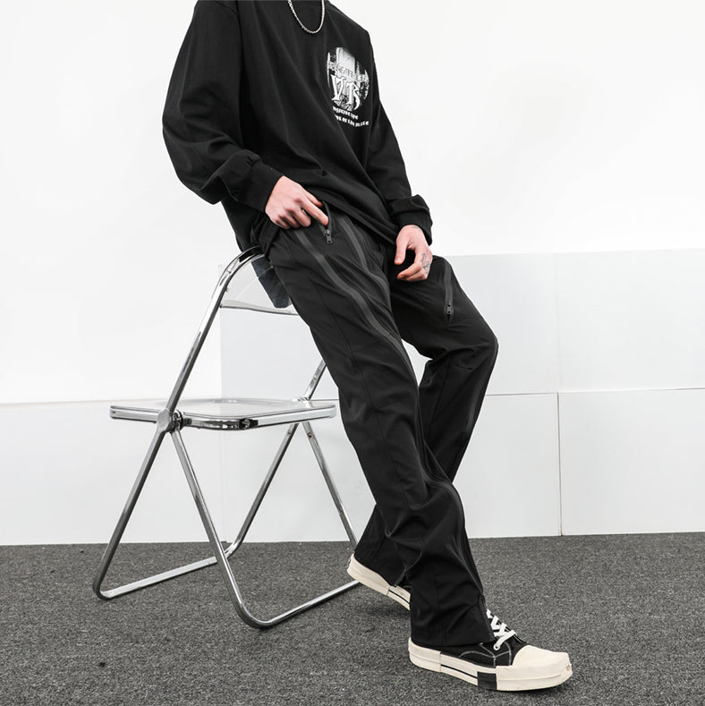 スリムカットテクニカルパンツ - ブラック/ネイビーブルー