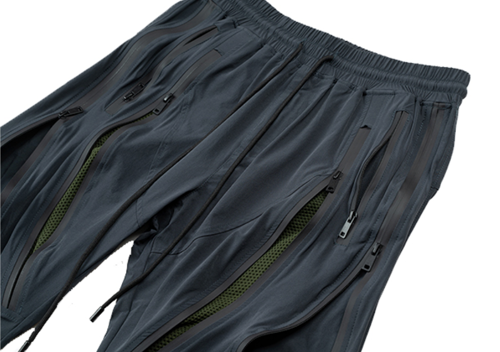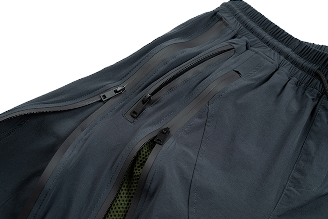 このアクティブなパンツは、コレクションのアウトドアの雰囲気がすべてです。滑らかな肌触りのテクニカルファブリックを使用したスマートなスリムフィットのシルエットに仕立てられており、フロントと脚のサイドパネルにジップアップのディテール、サイドにボタンのディテールが施されています。腿のジッパーにはベントメッシュがあり、通気性に優れています。