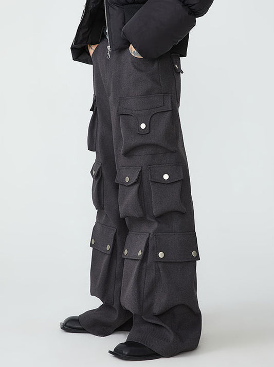 MULTI-LAYERED PANELS BAGGY DENIM JEANS - BLACK