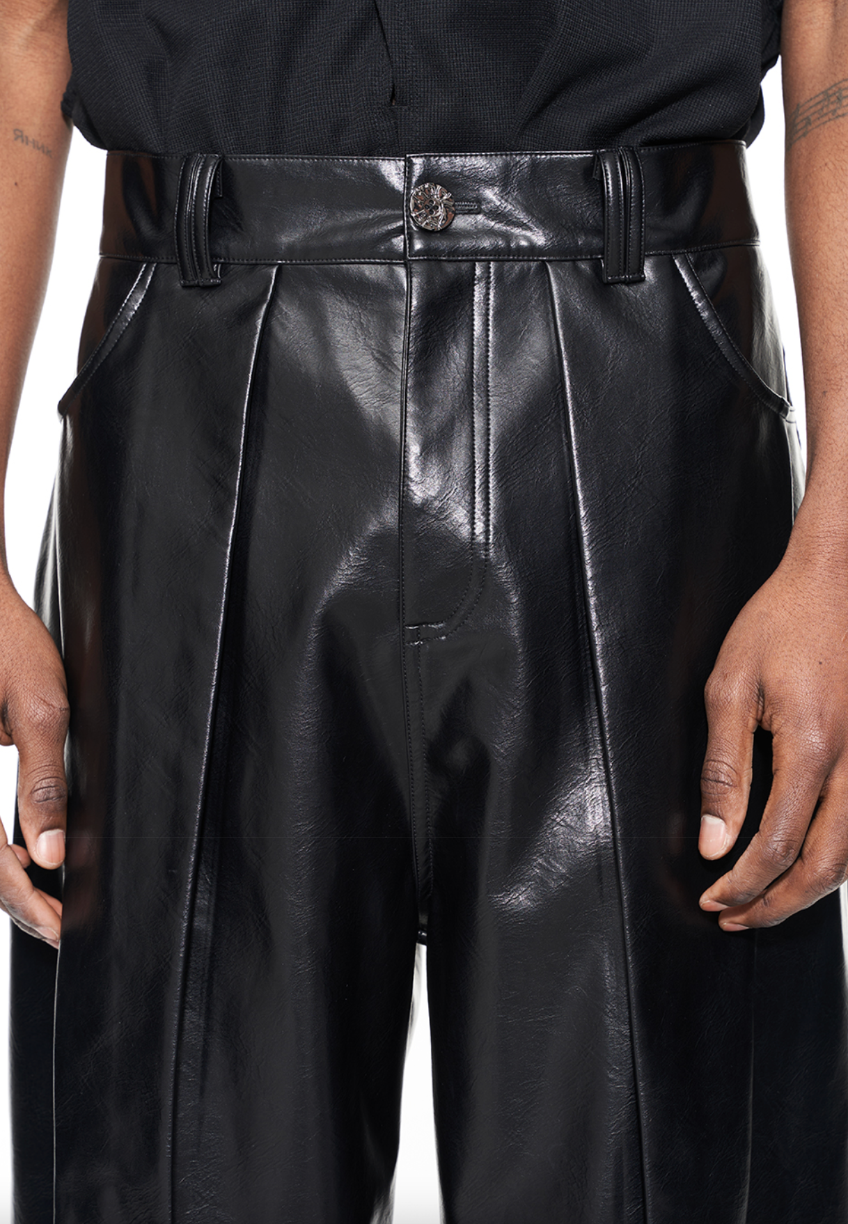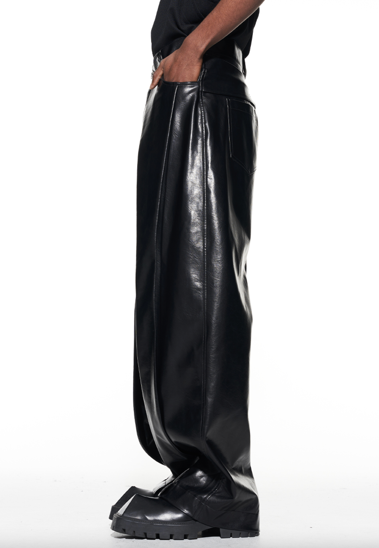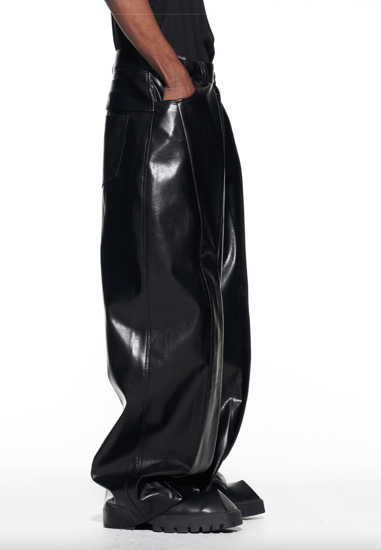 FAUX LEATHER STRAIGHT LEG PANTS