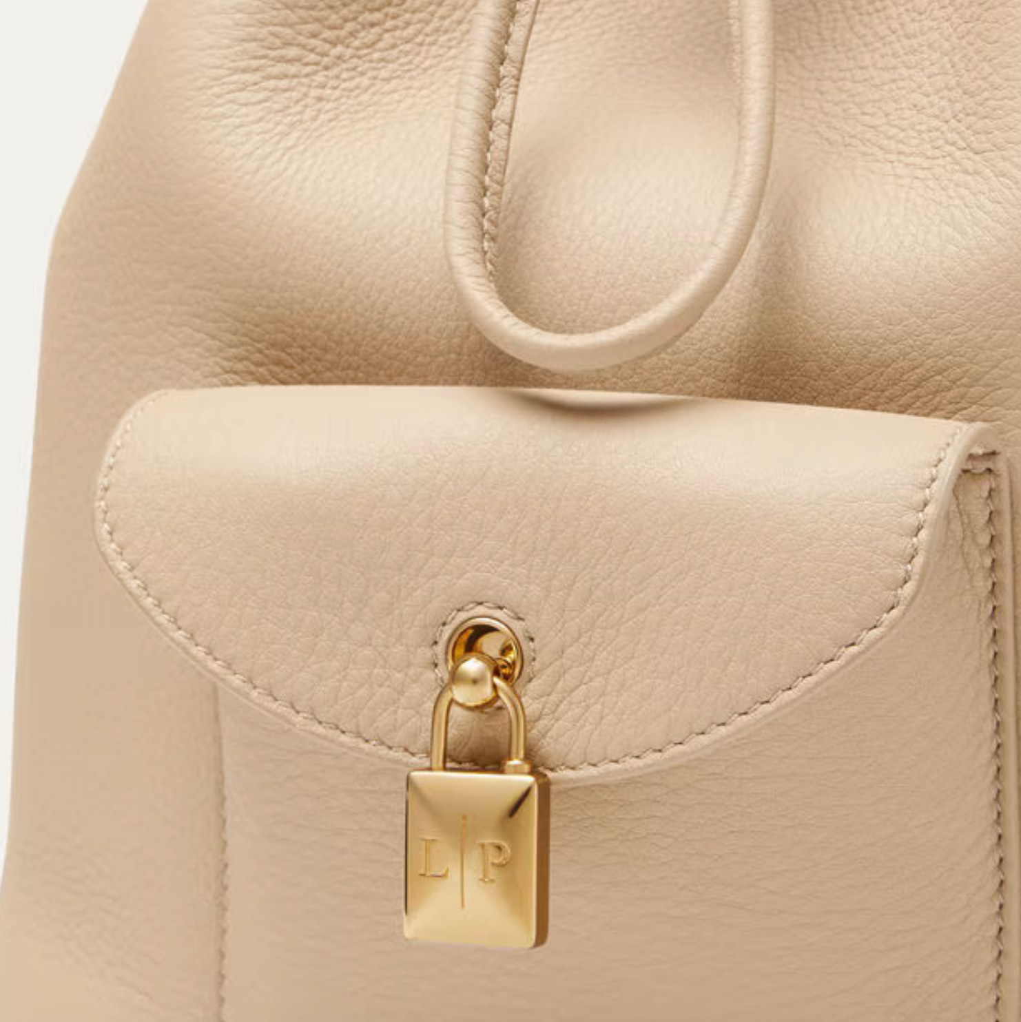 Leather front pocket with magnetic closure and iconic Loro Piana logo padlock