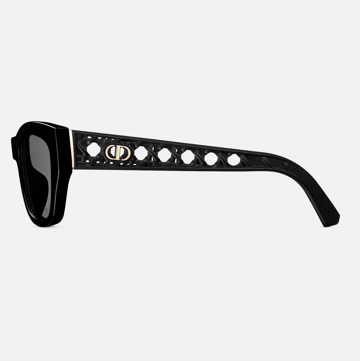 Matte black nylon temples with openwork Cannage motif