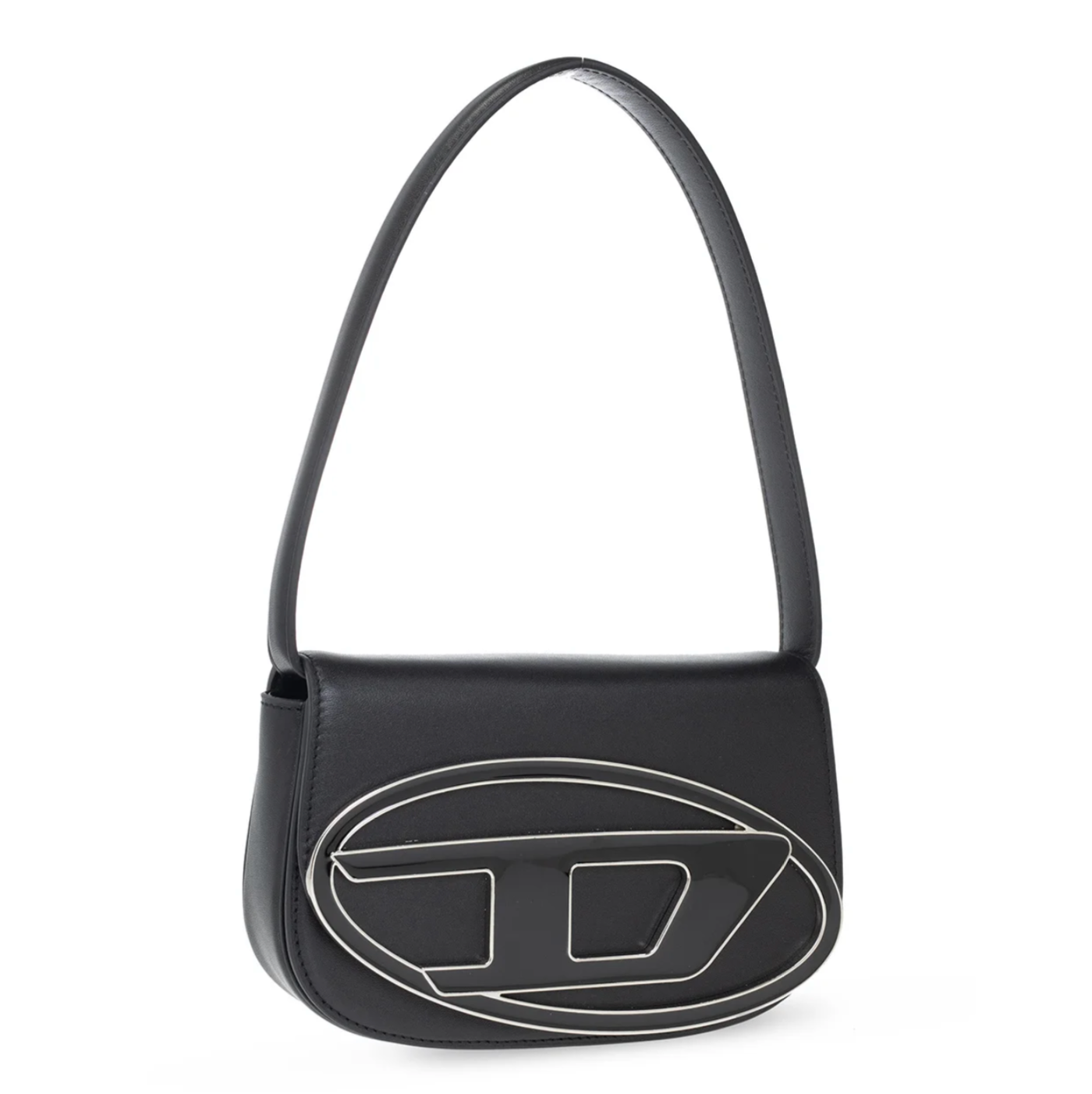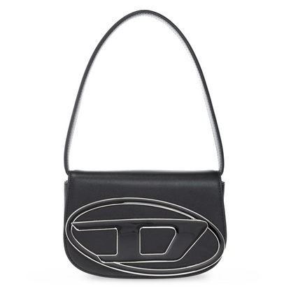 DIESEL 1DR LOGO PLAQUE SHOULDER BAG - BLACK