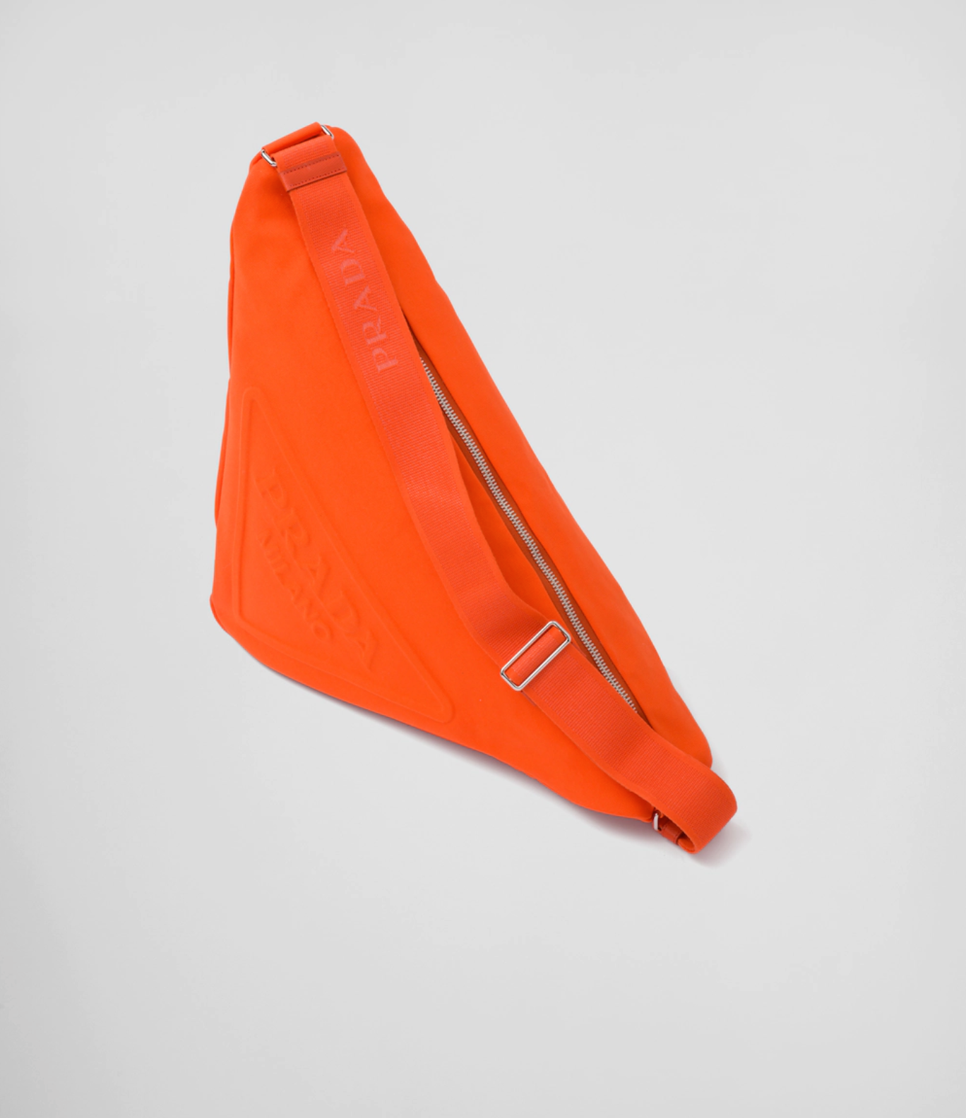 Defined by an adjustable shoulder strap that can be worn in different ways, this versatile triangular shaped canvas bag reimagines Prada's iconic geometric logo in a new way and features delicate tonal details for a monochrome, one-material effect.