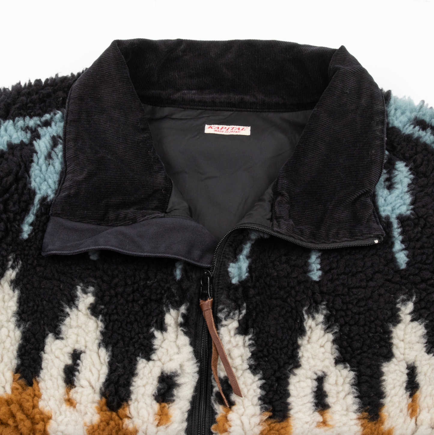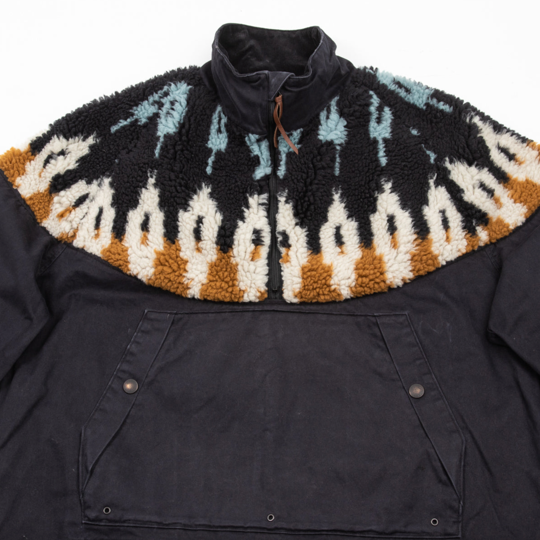 The perfect pullover for the cold morning walk, Kapital have dressed the whole thing up a bit, trimming the yoke 360 degrees in a nordic print fleece for extra warmth. The body is cut very wide, meant to easily fit on top of whatever else you already had on. The 3/4 zip front also allows you to regulate how much heat you lose through the chest, while the collar is lined in a soft corduroy.