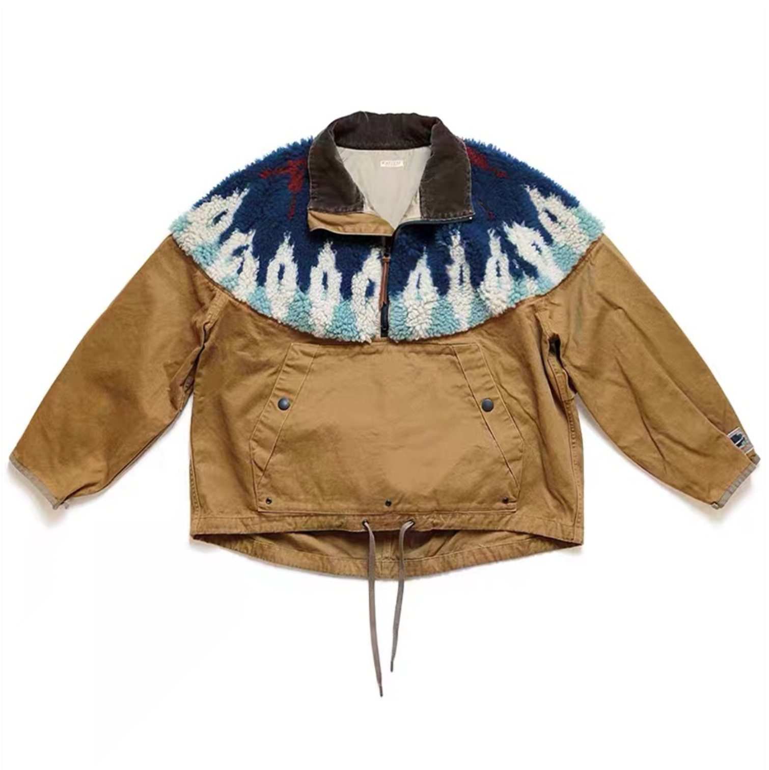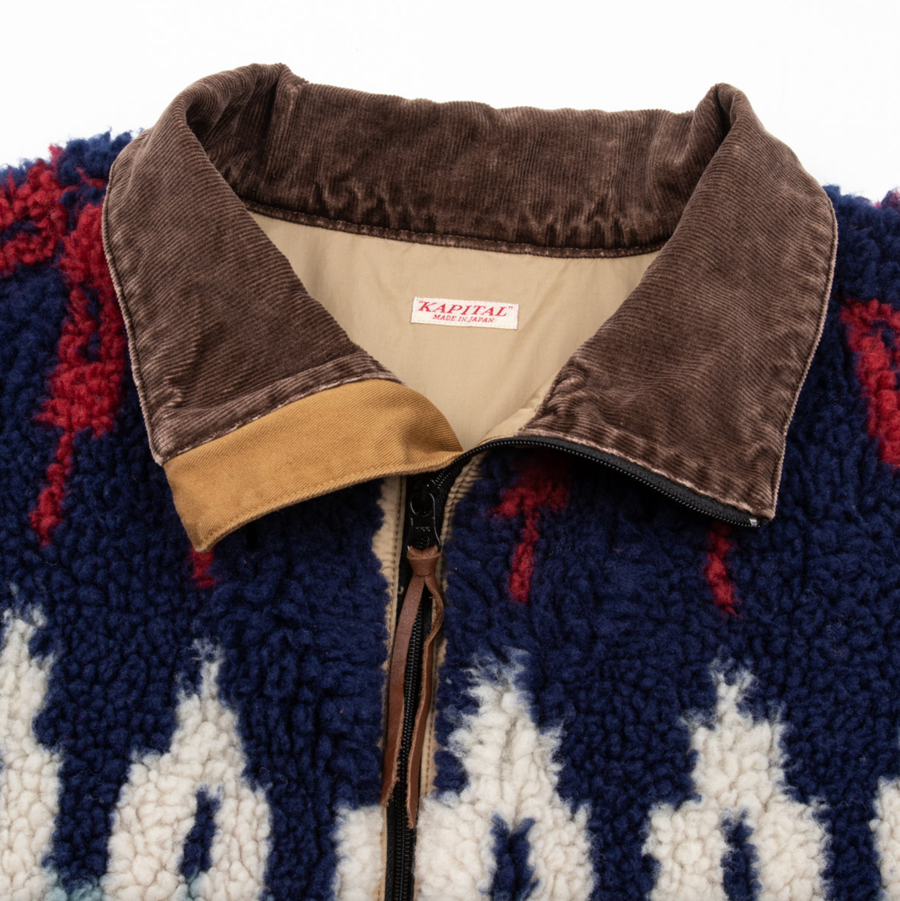 With a relaxed and boxy fit, the Fleece Anorak Chino features KAPITAL's iconic Boa Fleece with a tribal twist for AW21. Finished with a corduroy collar, zip fastening and drawstring hem, alongside a large kangaroo pocket on the front.