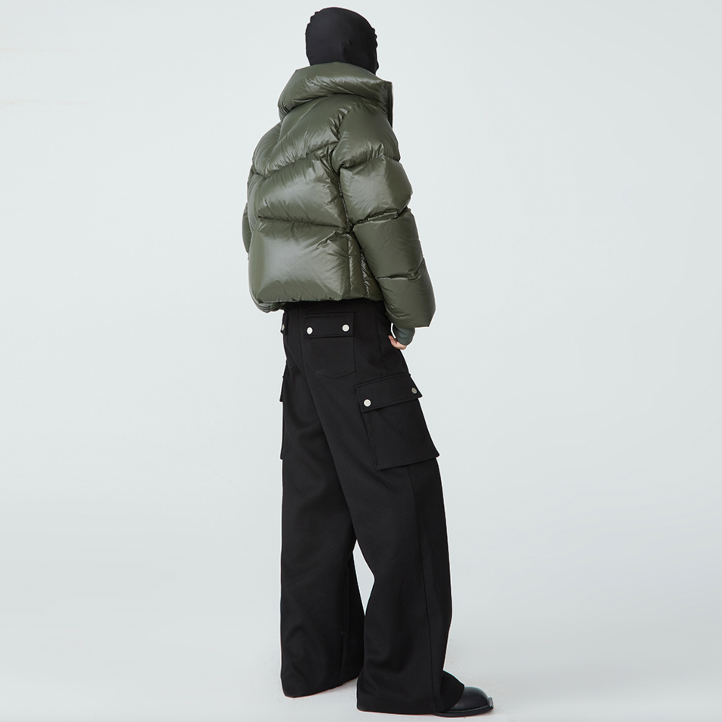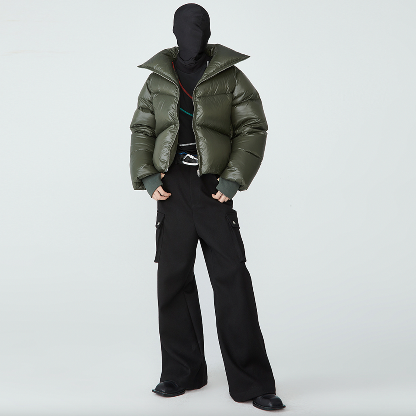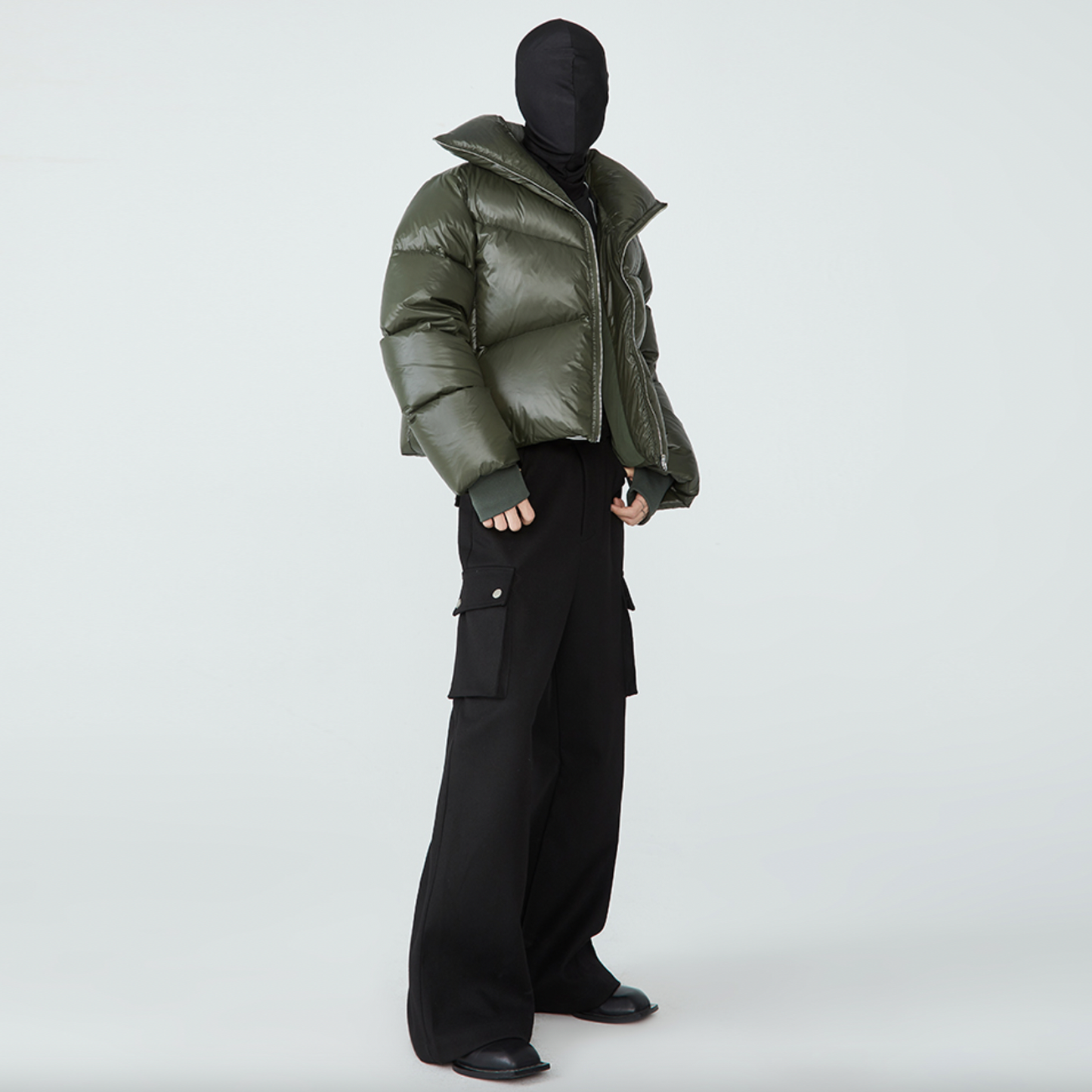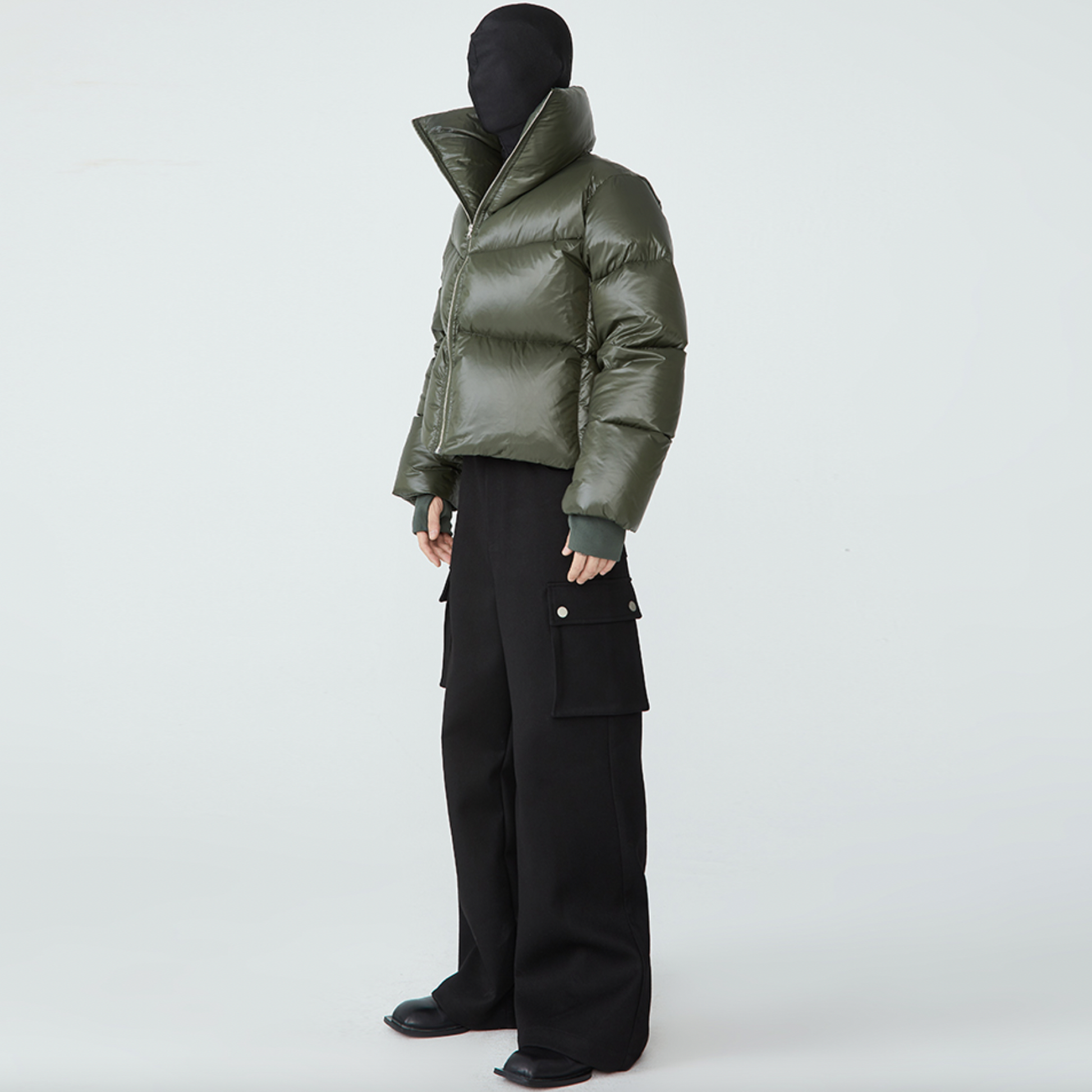 QUILTED SHELL DOWN JACKET - OLIVE GREEN