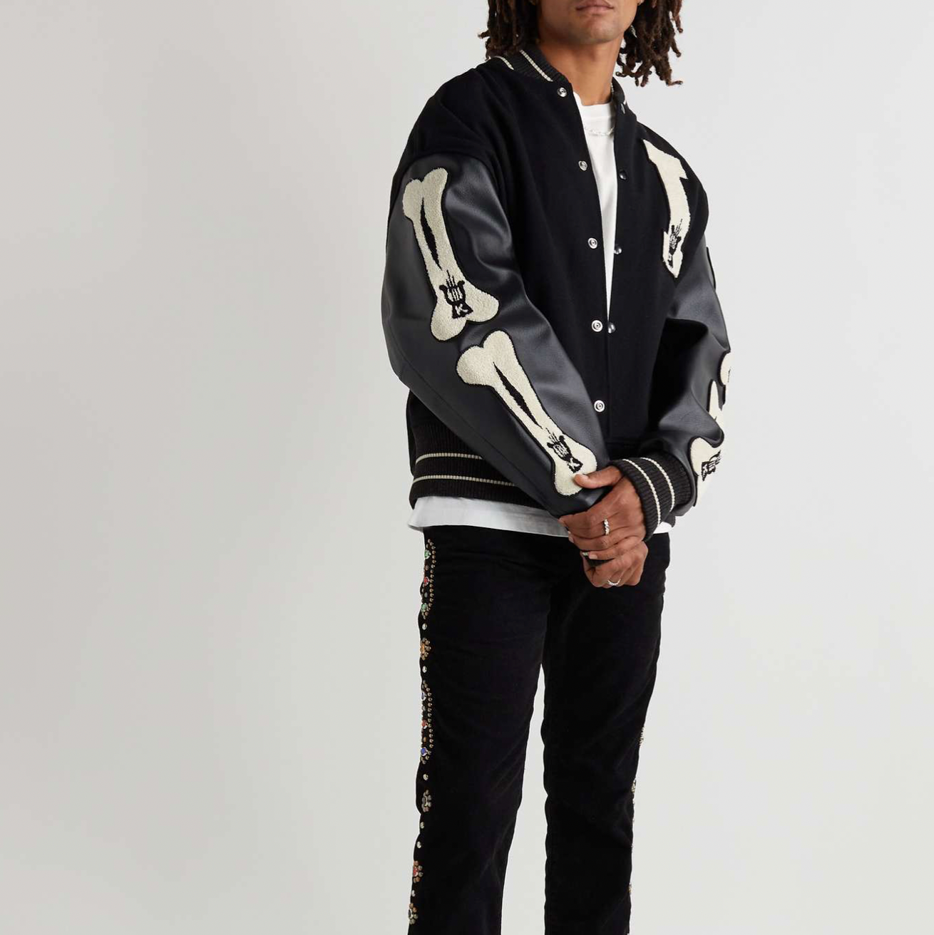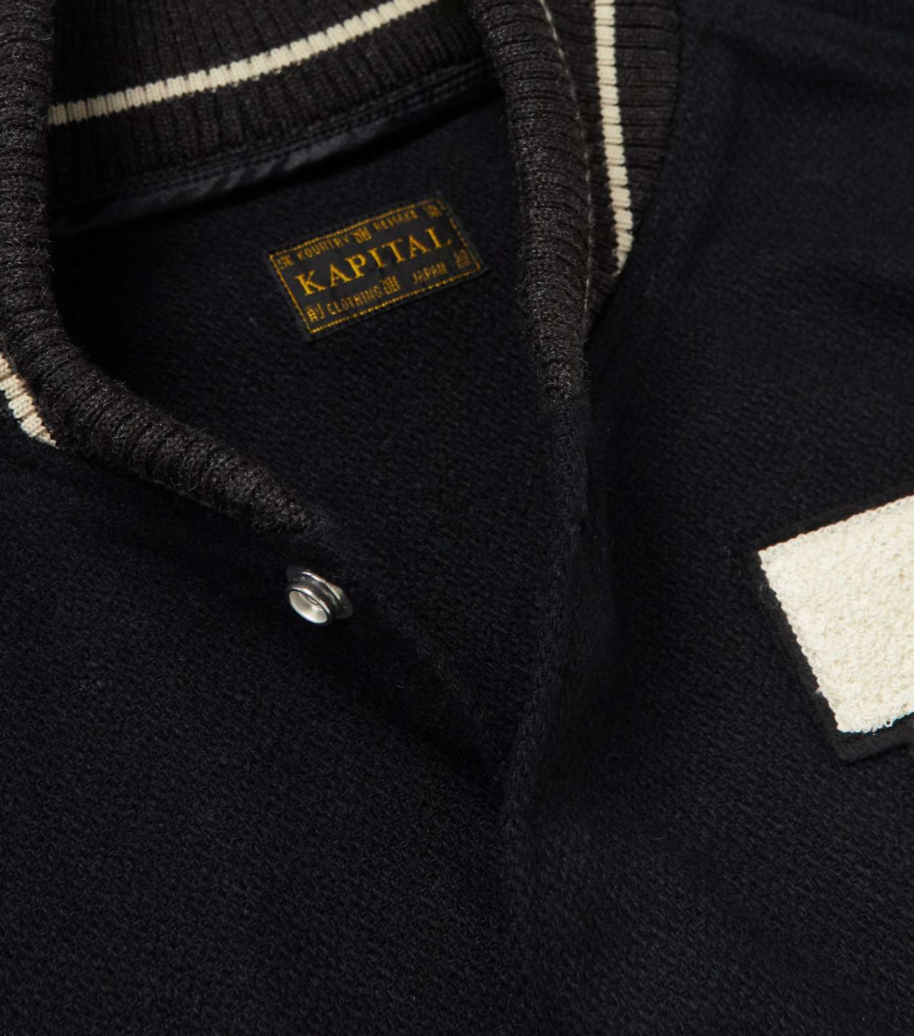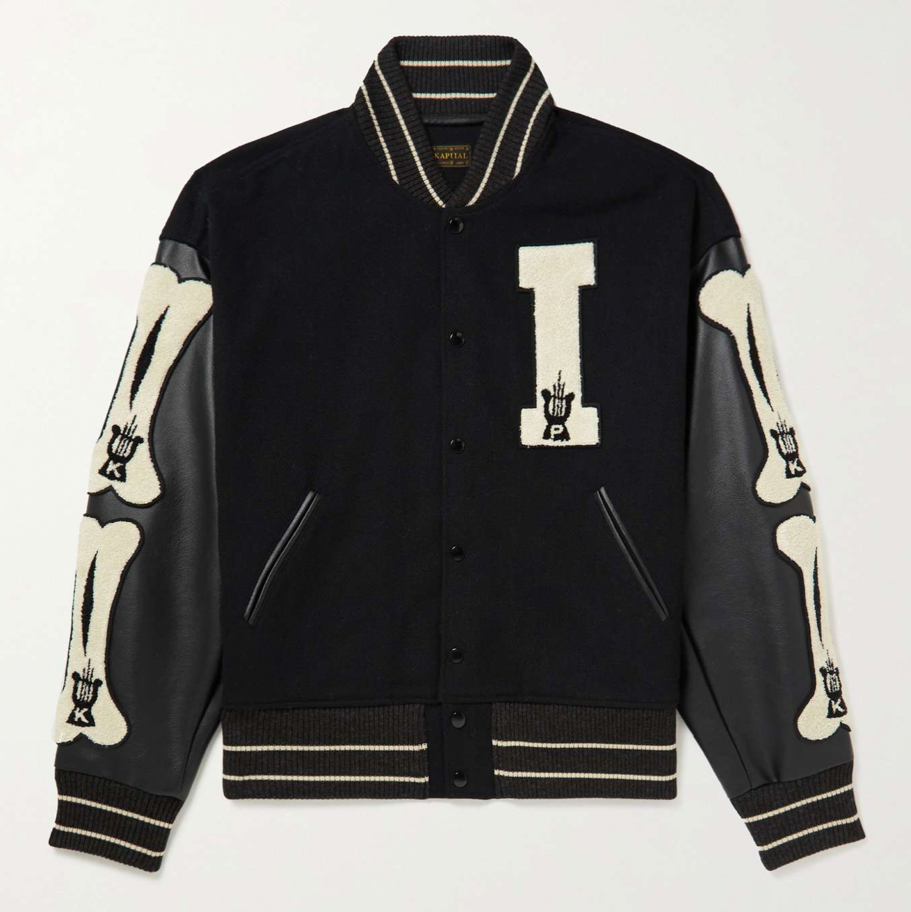 KAPITAL riffs on classic Americana motifs. This varsity jacket has been made in Japan from soft wool and faux leather and is appliquéd with the brand's signature bones at the sleeves. The relaxed fit makes it easy to layer over tees and slim knits.