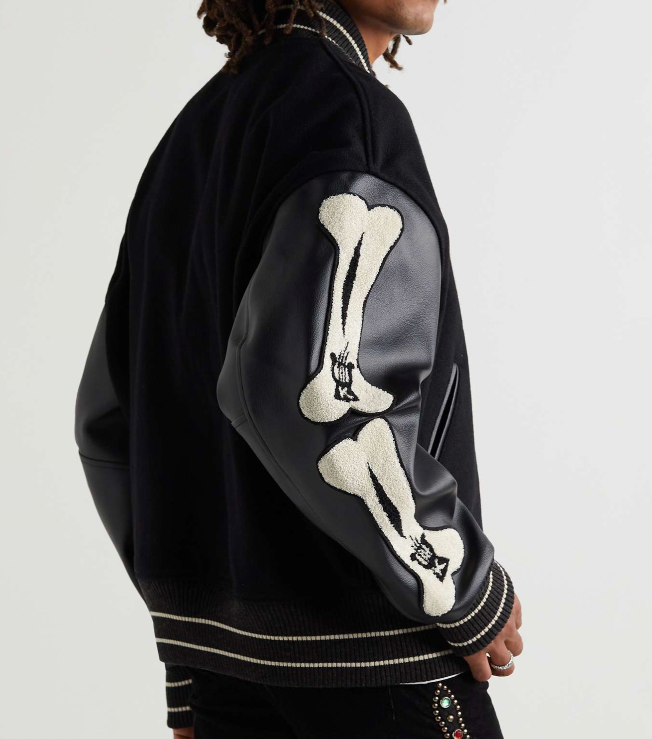 FAUX LEATHER AND WOOL-BLEND VARSITY JACKET - BLACK