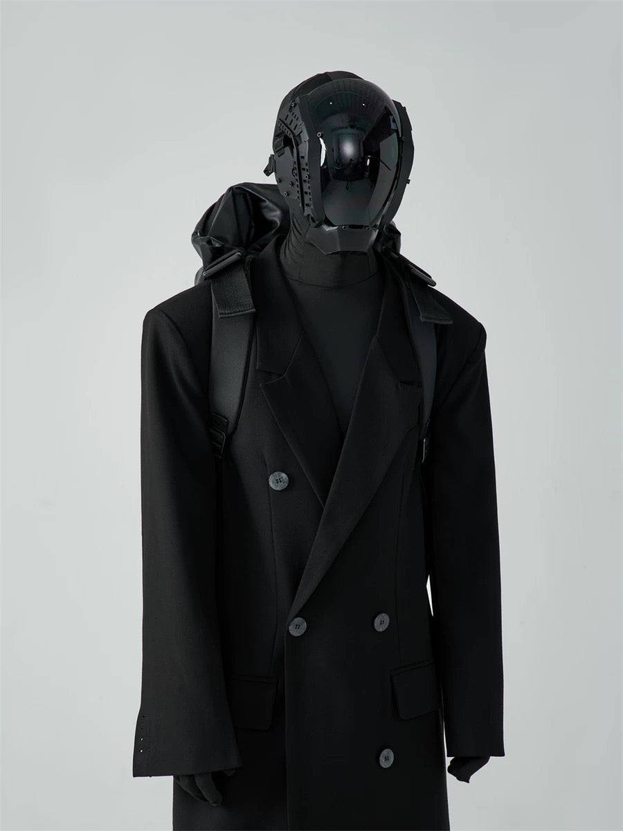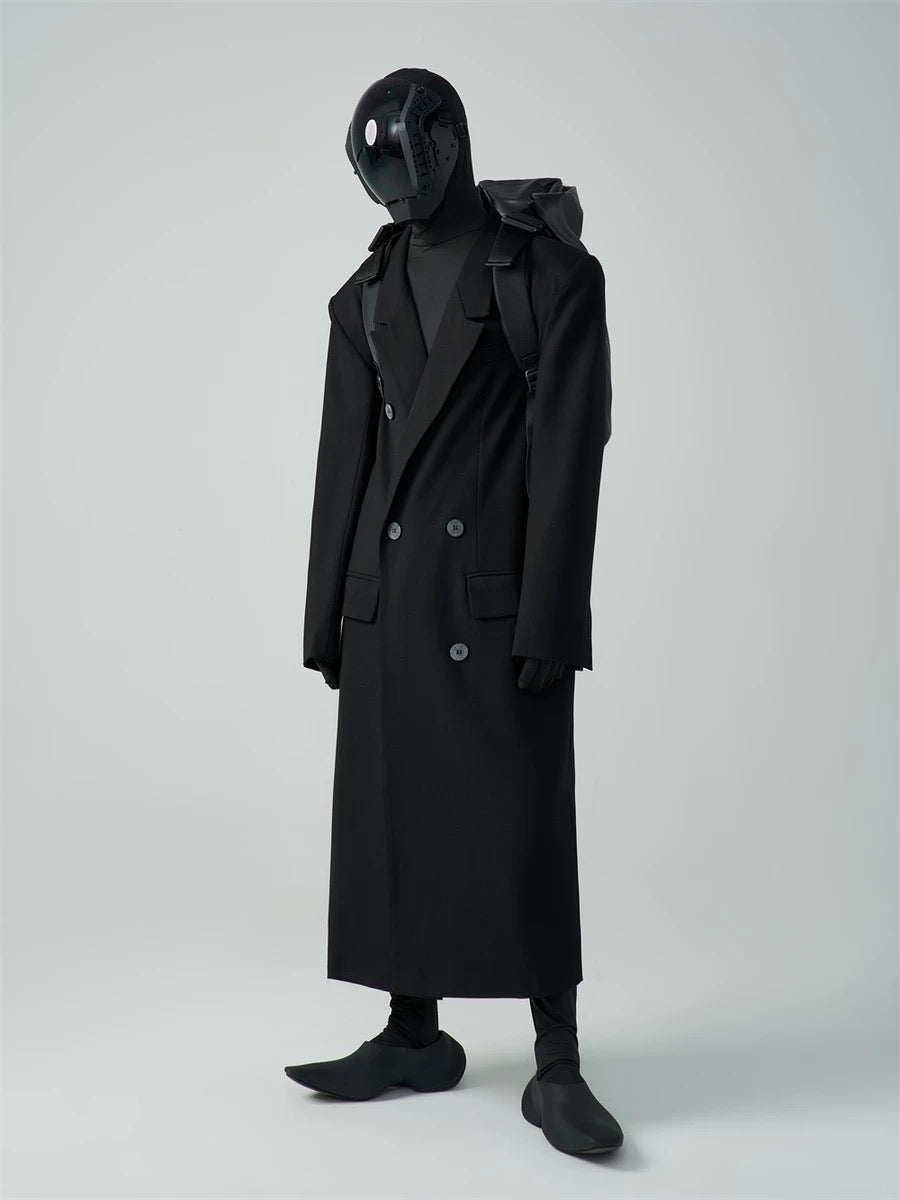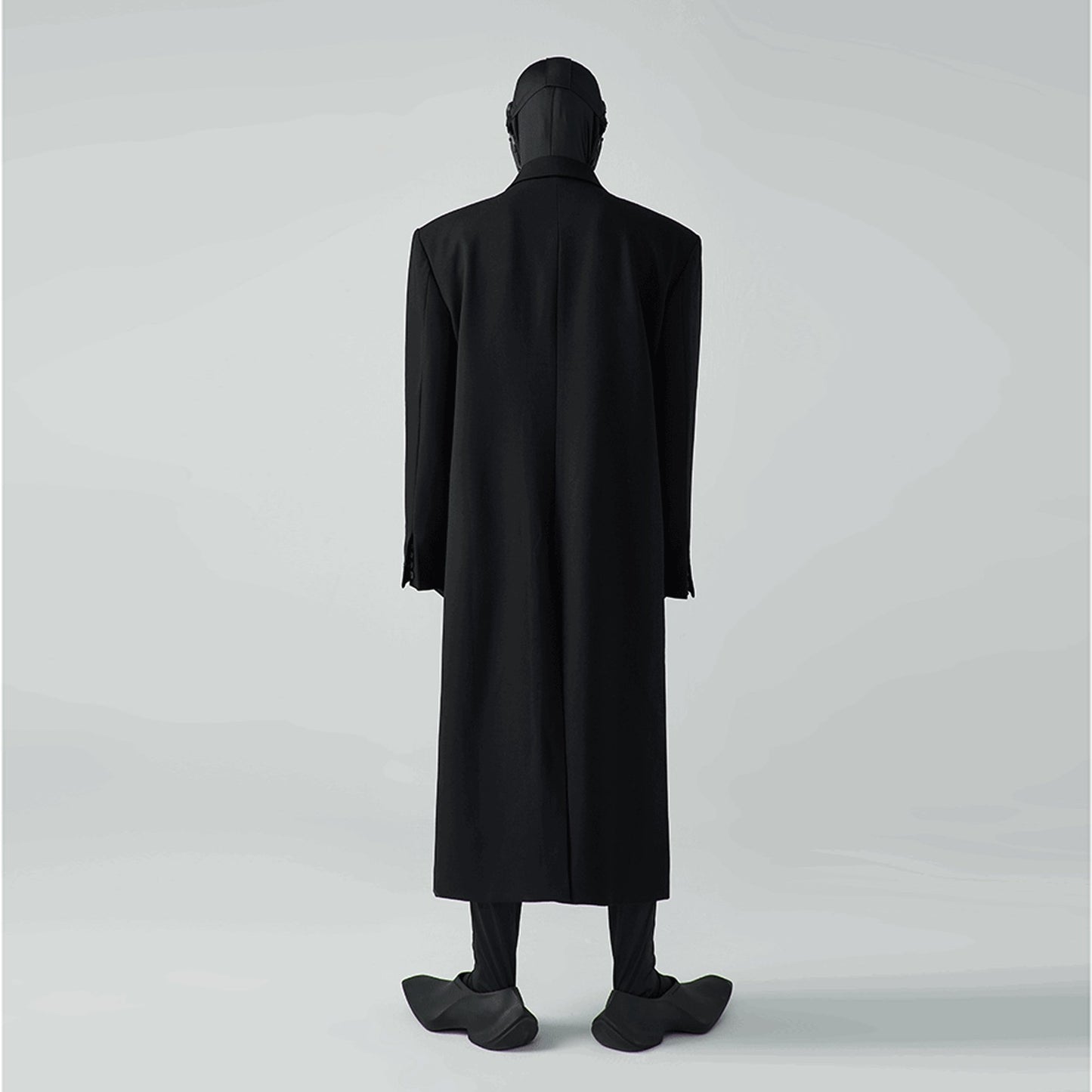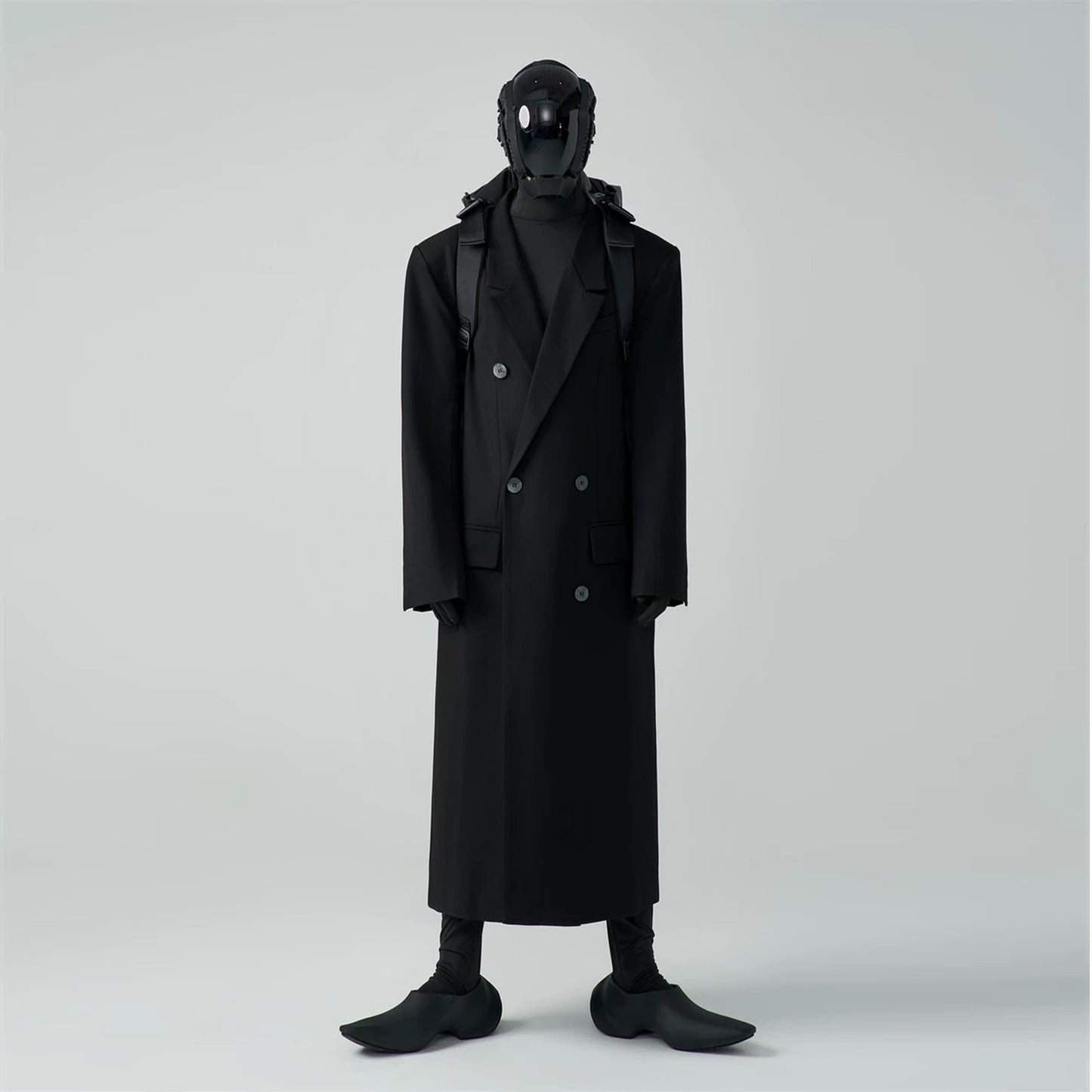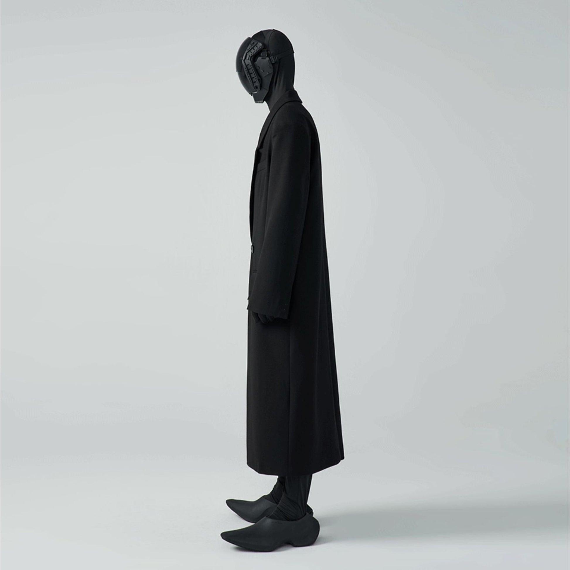 HOMME OVERSIZED DOUBLE-BREASTED WOOL-BLEND COAT - BLACK
