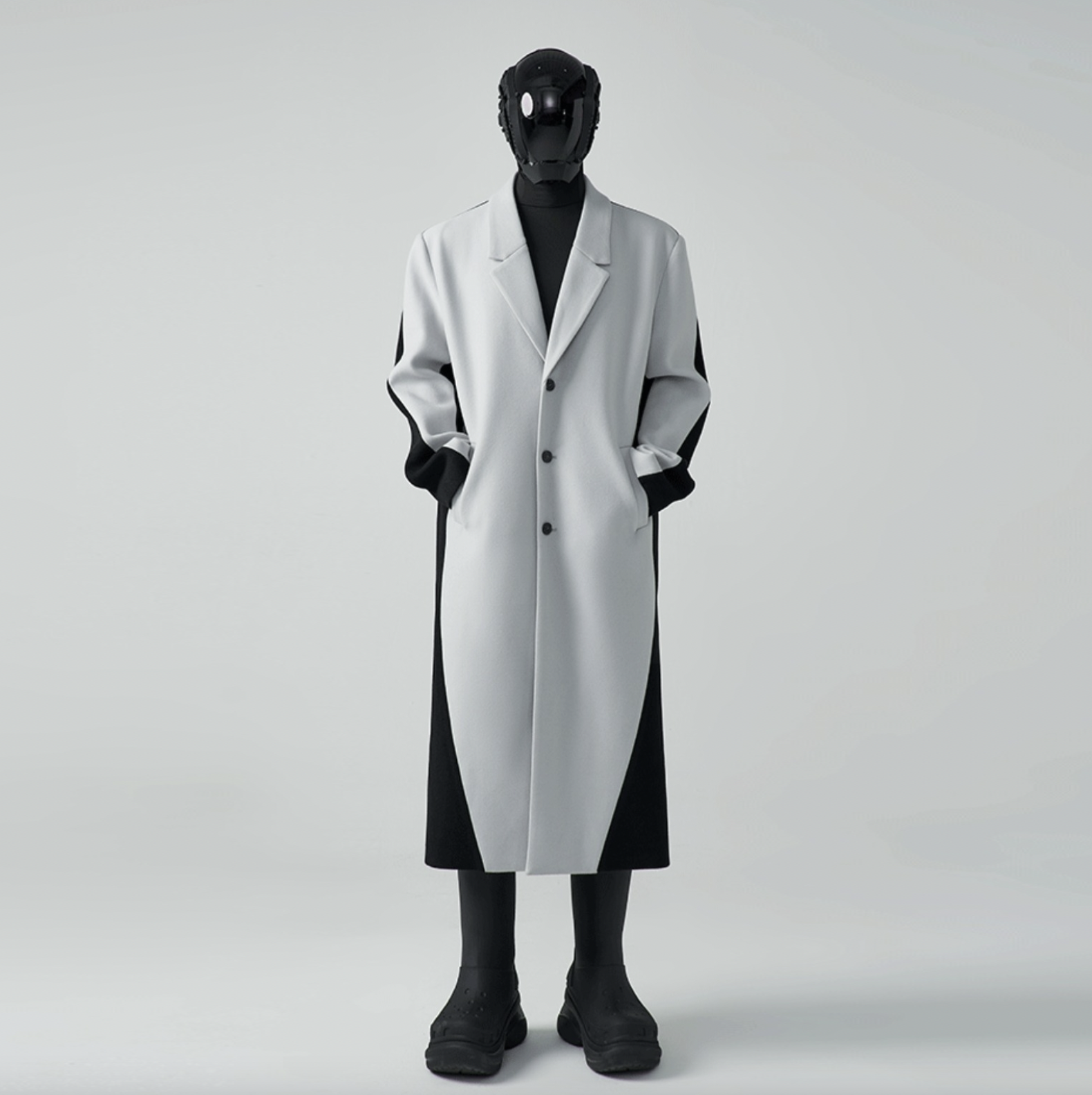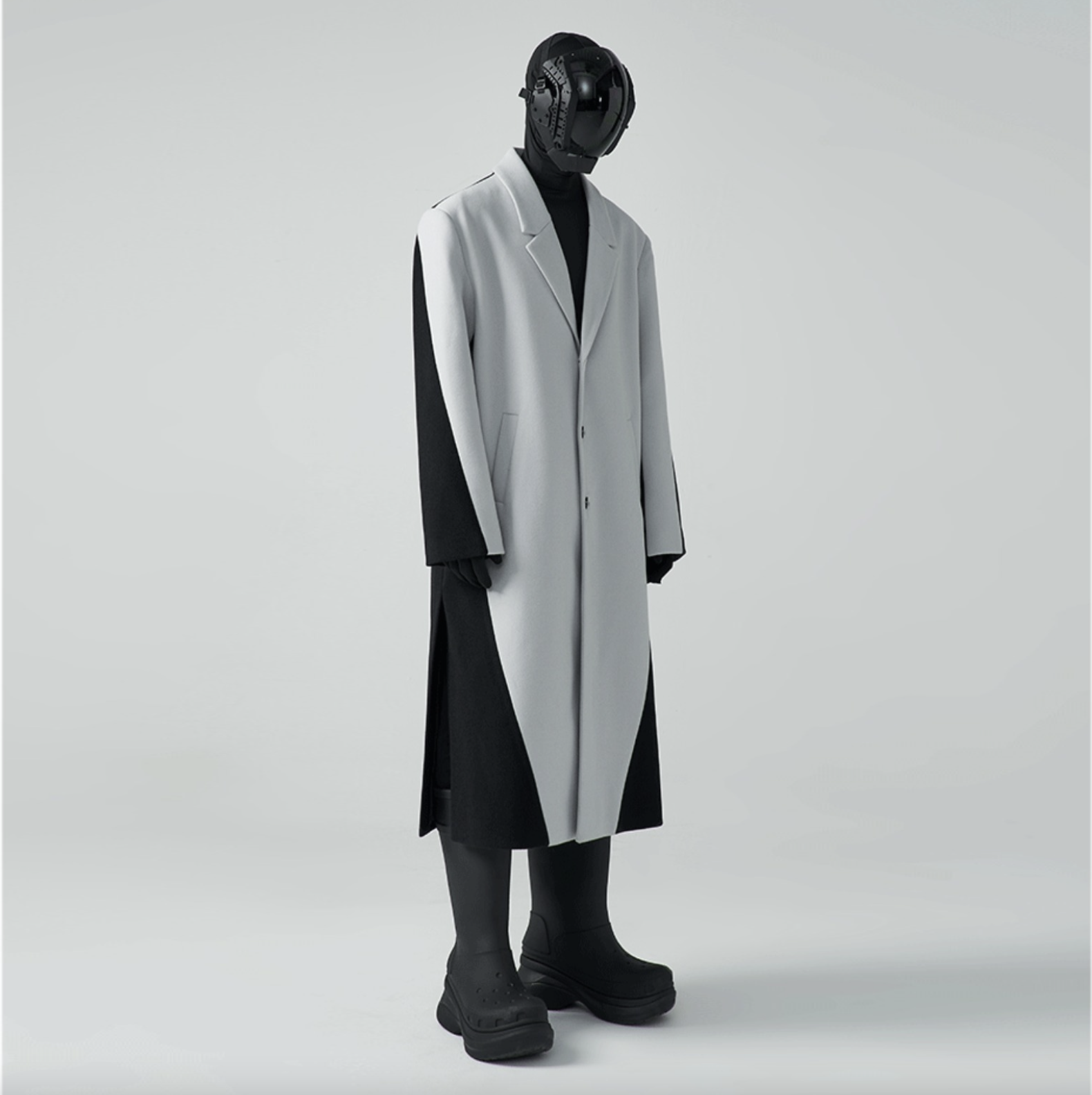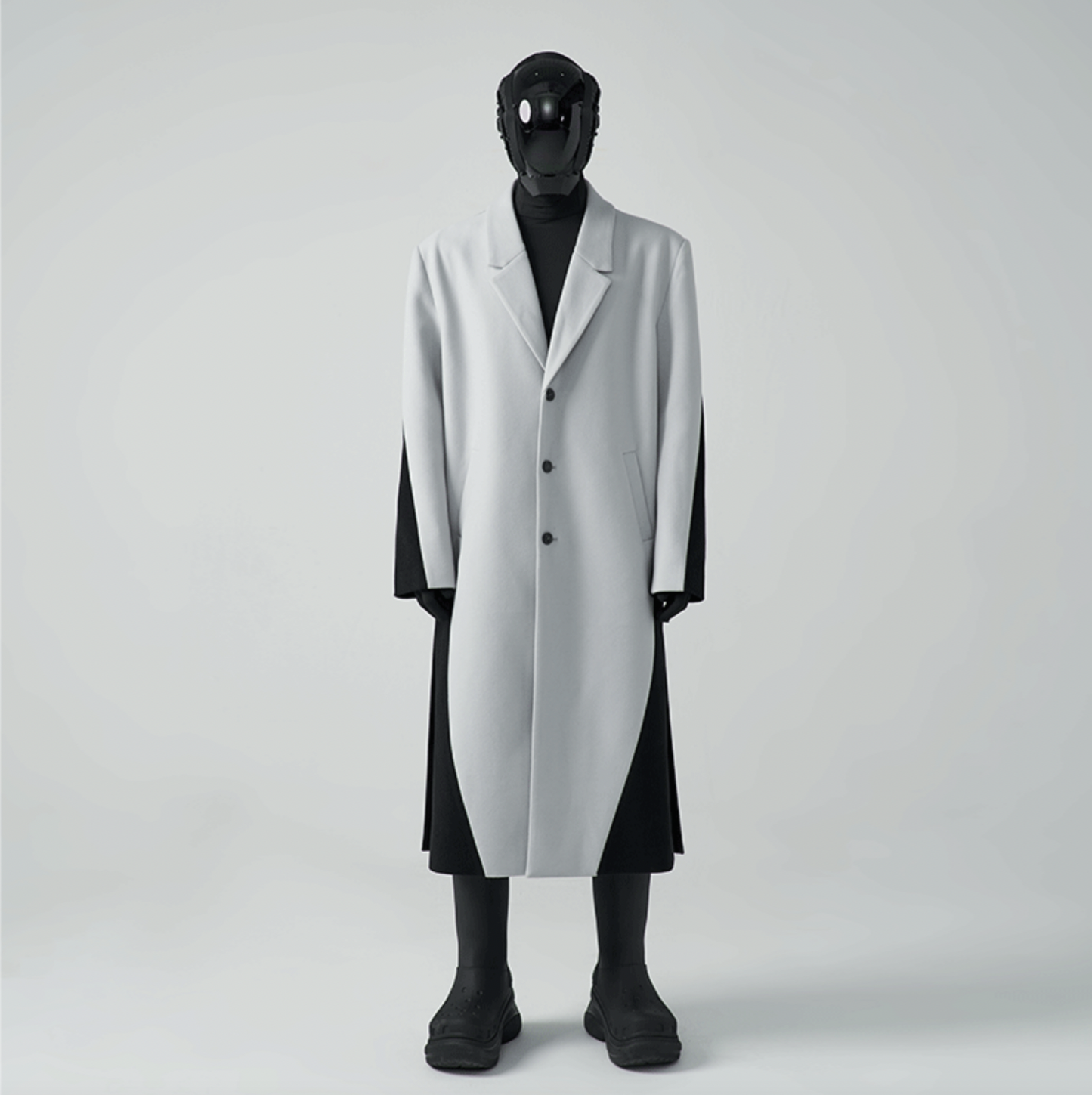 HOMME OVERSIZED TWO-TONE WOOL-BLEND COAT - CEMENT/ BLACK