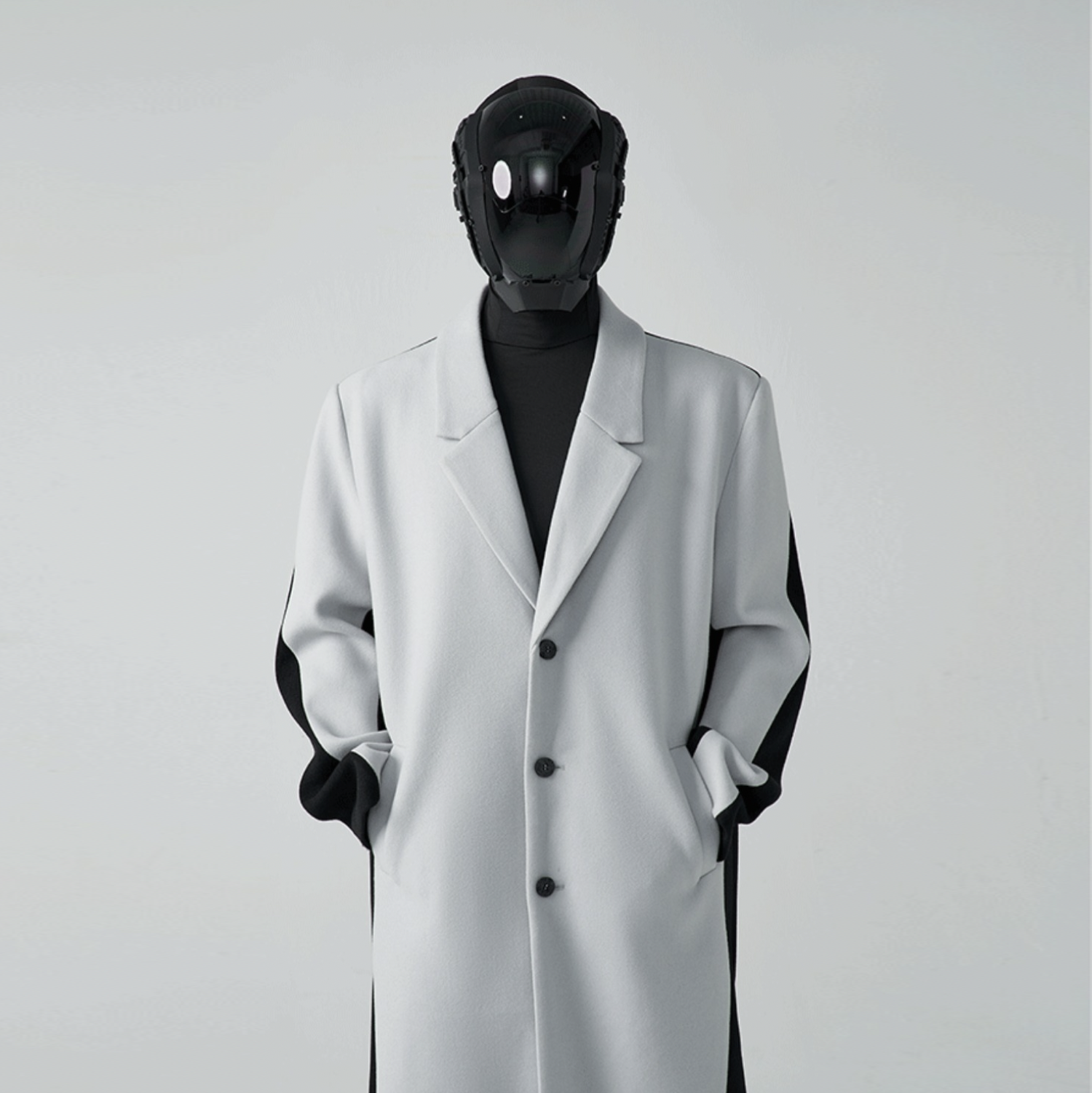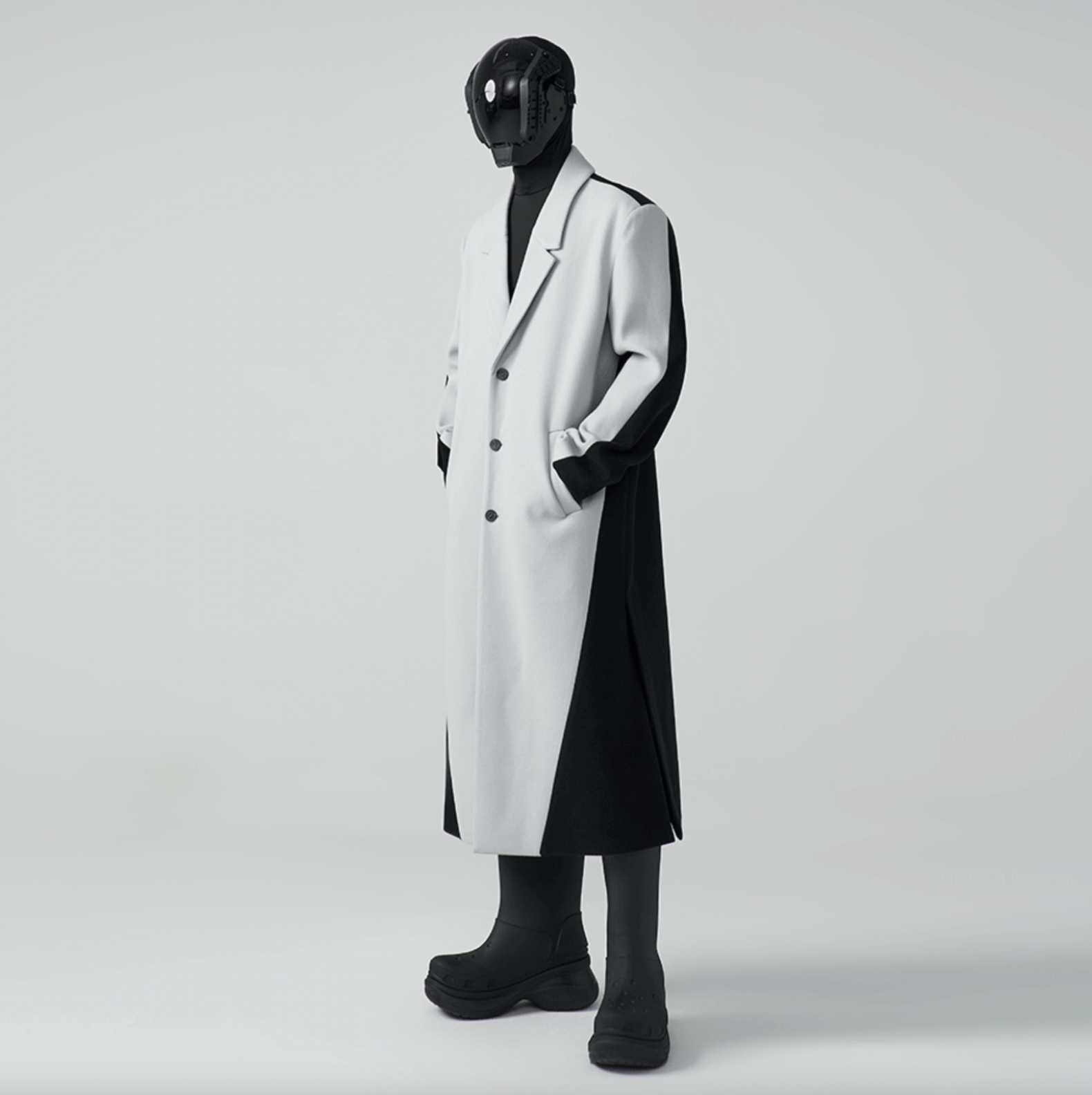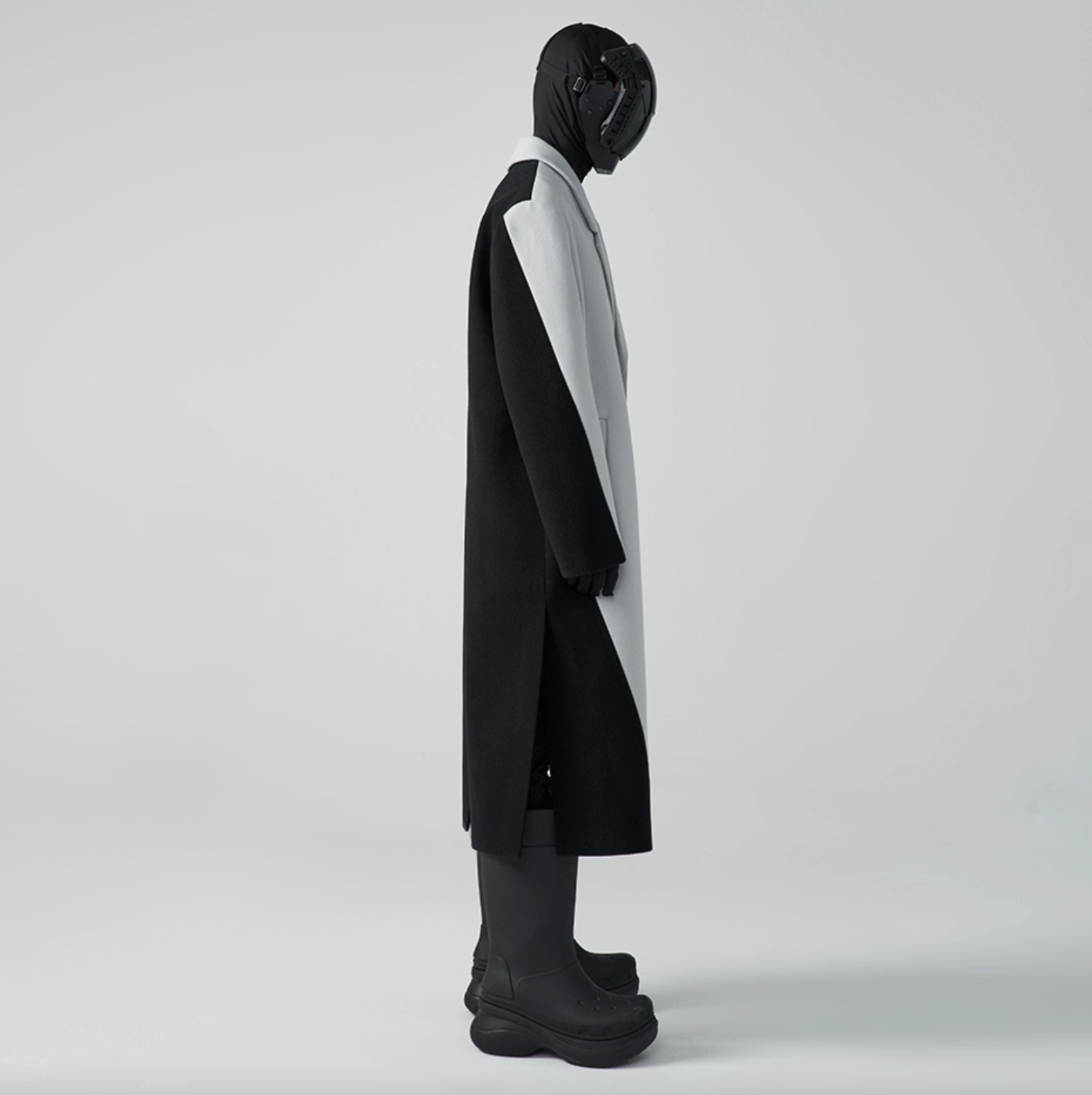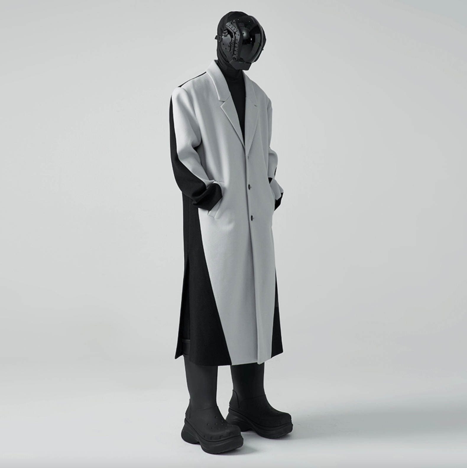 HOMME OVERSIZED TWO-TONE WOOL-BLEND COAT - CEMENT/ BLACK