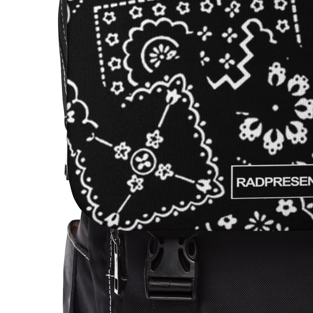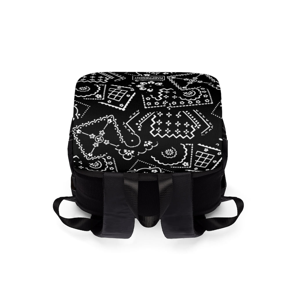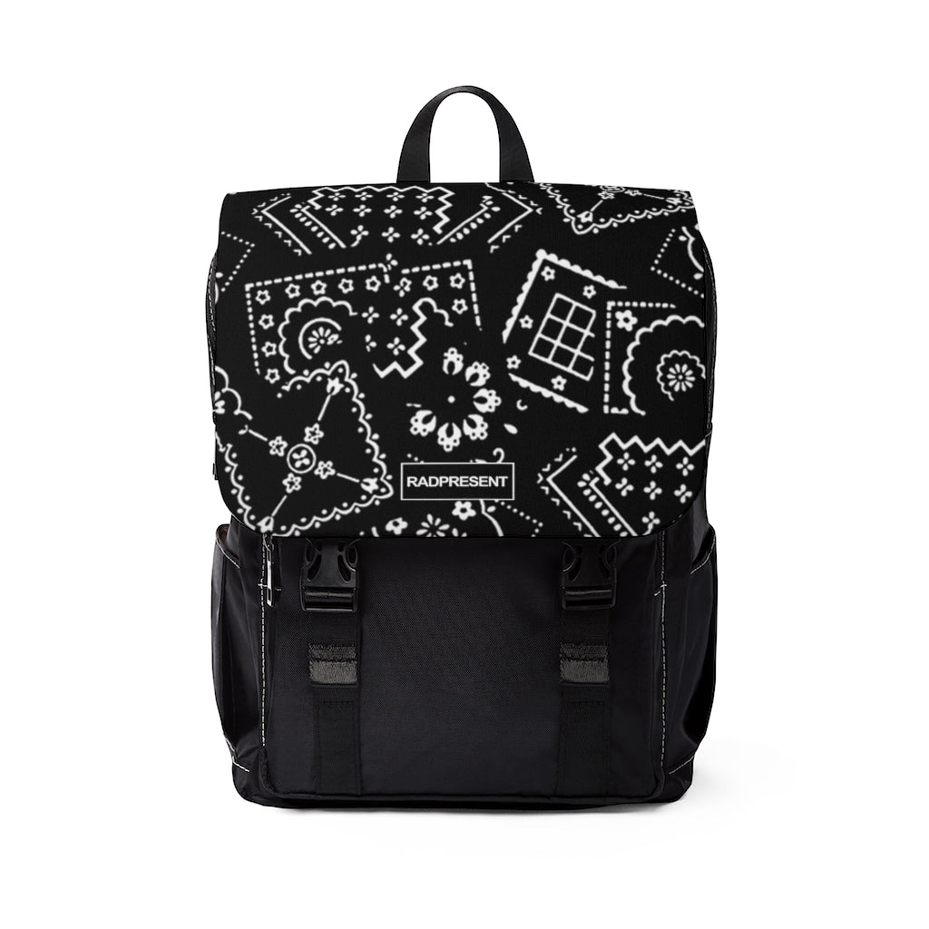 Casual backpack in a classic shape with a flap front design. It is made of a durable oxford fabric. It has two slip interior pockets and one laptop sleeve in the main compartment, a front zipper pocket, two side pockets.