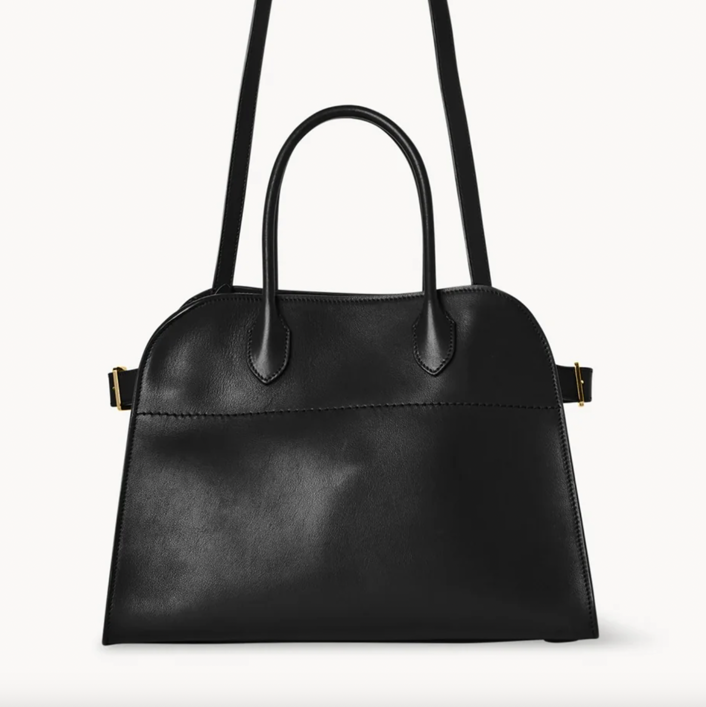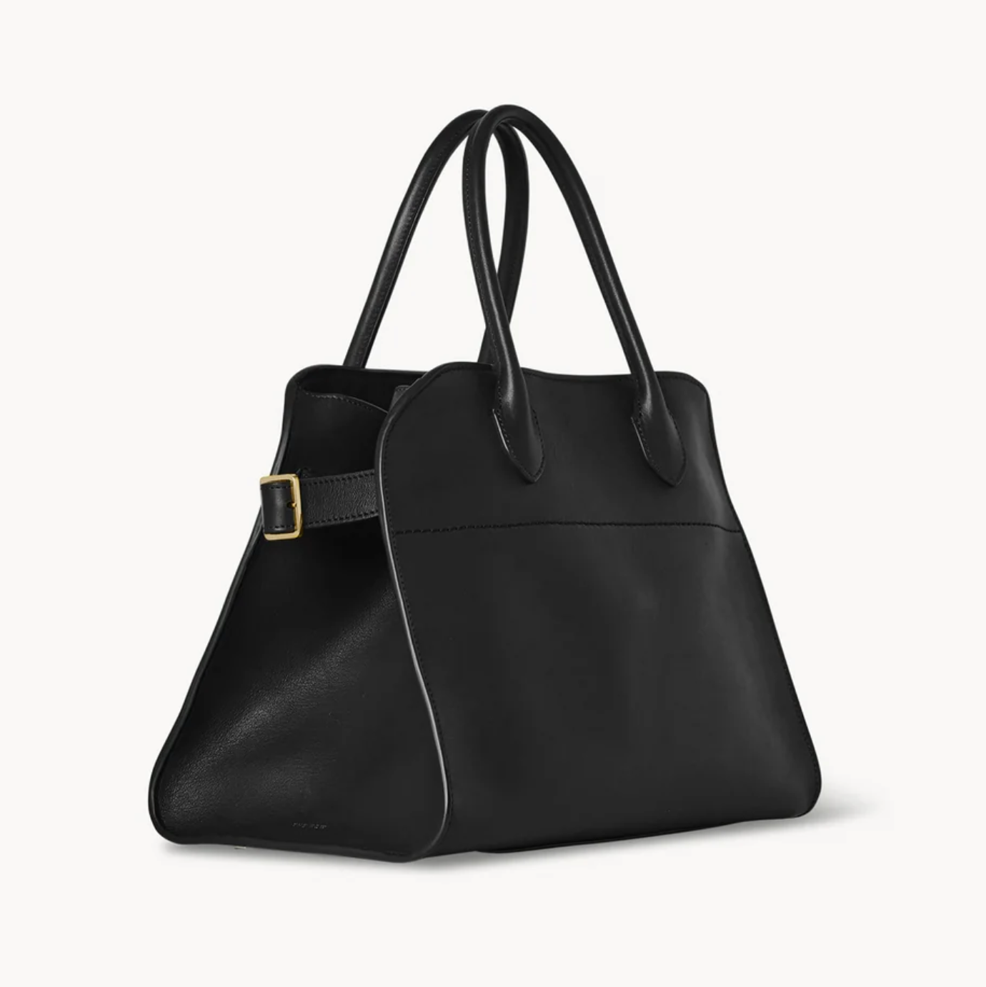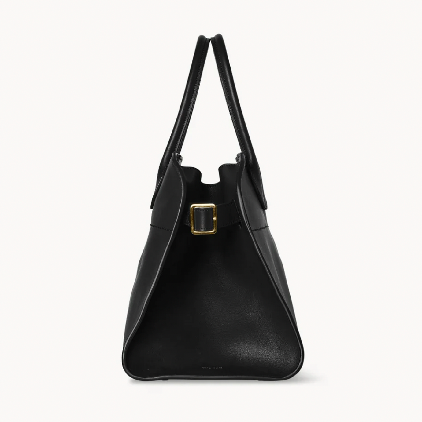 THE ROW SOFT MARGAUX 12 BUCKLED LEATHER TOTE - BLACK