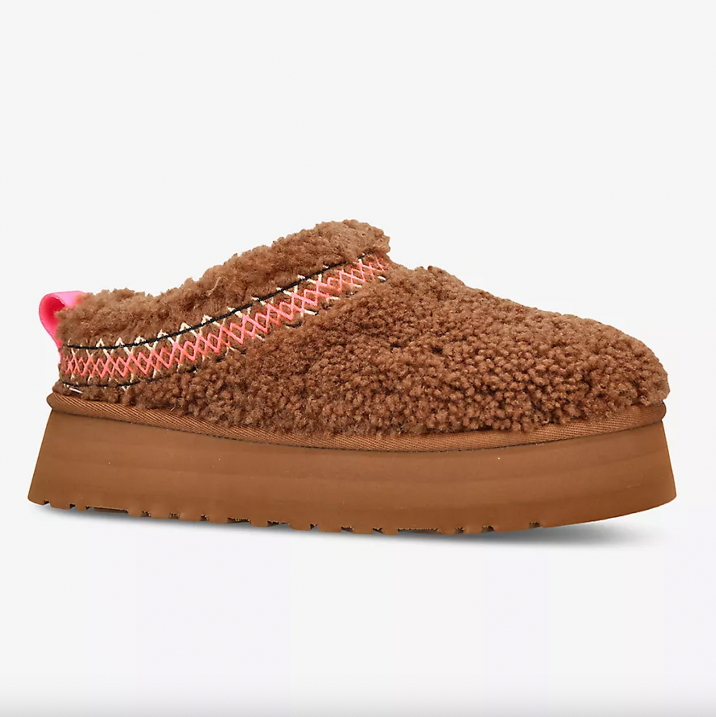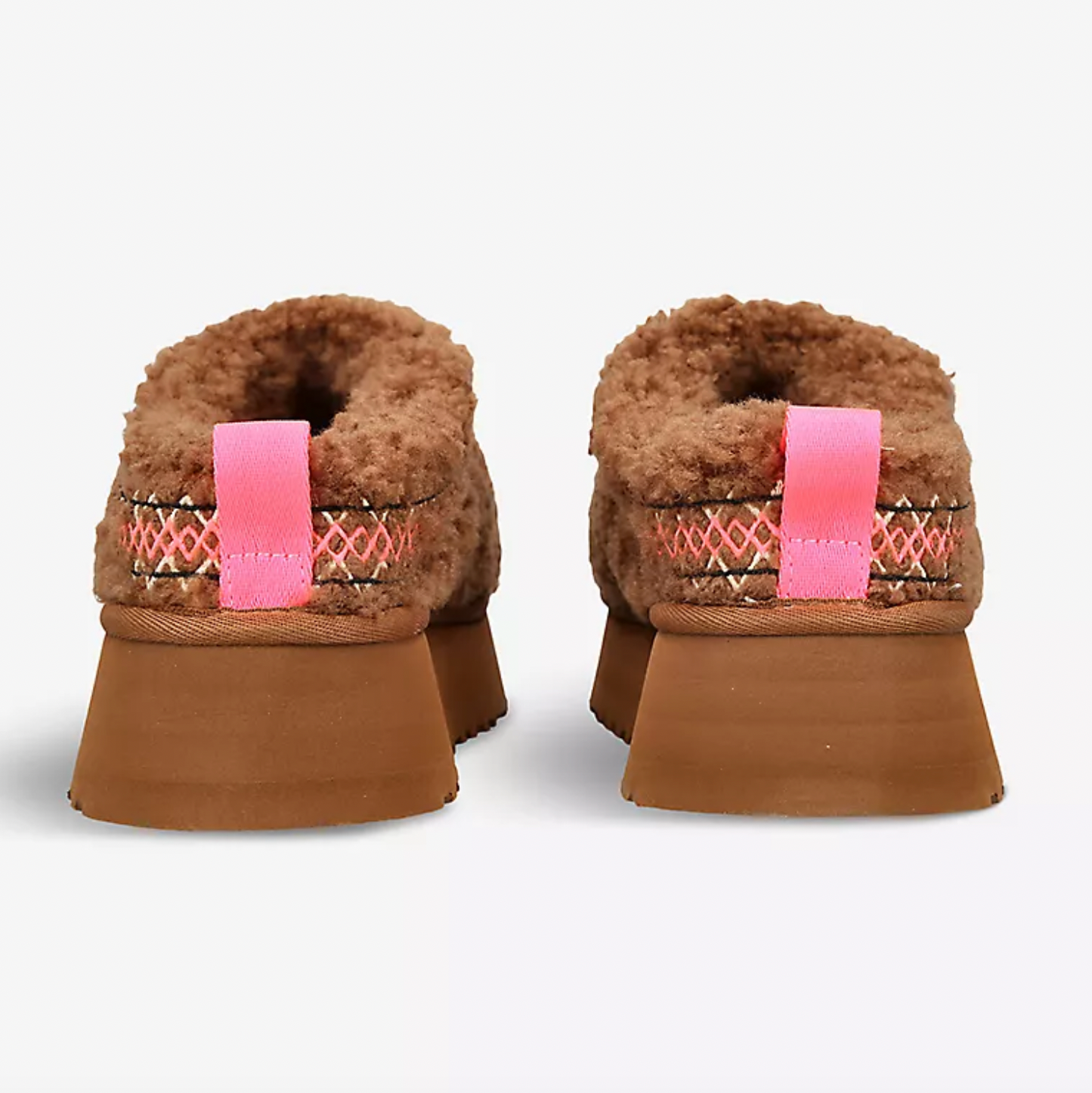 • Round closed toe, Tasman braid embroidery, all-over teddy sheepskin, contrast heel tab, cushioned insole, platform sole