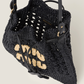 WOVEN FABRIC MINI-BAG - BLACK/ TAN