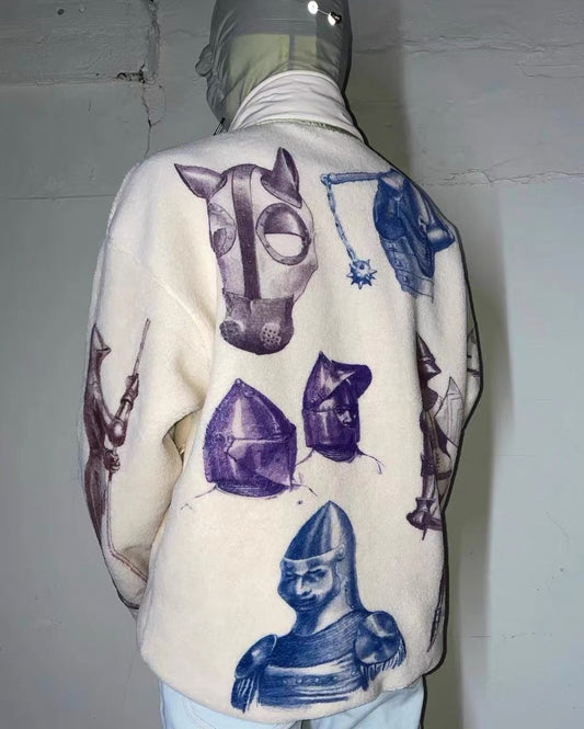 NIGHT KNIGHT REVERSIBLE SHERPA ZIP JACKET - WHITE
