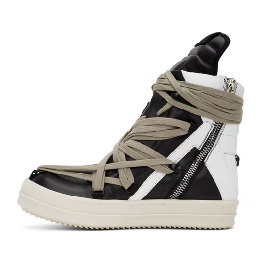 GEOBASKET “TECUATL” TWO-TONE LEATHER HIGH TOP SNEAKERS - BLACK-WHITE