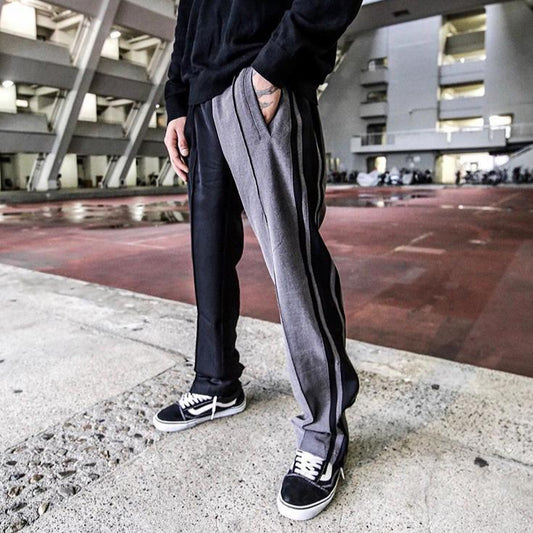 SIDE-STRIPE SPLIT TRACK PANTS - BLACK-GREY/ BLACK-BROWN